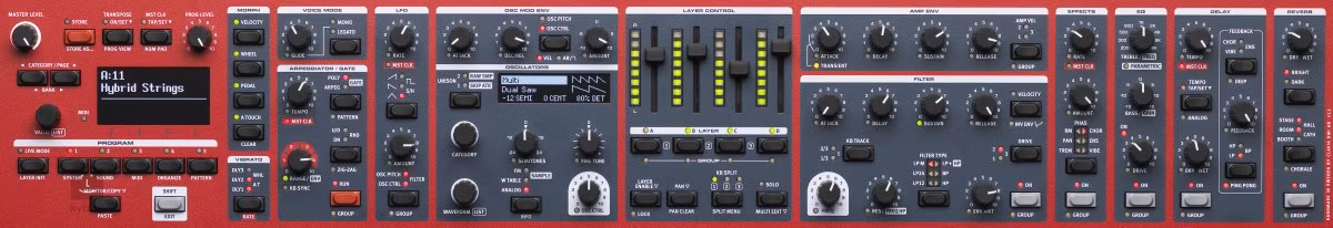 Nejuniverzálnější nástroj od Nord Nord Wave 2 obsahuje čtyři nezávislé syntezátory, kdy každý disponuje vlastním intuitivním ovládacím panelem a přehledným OLED displejem pro snadné nastavení. Syntezátory nabízí širokou paletu zvuků a samplů, takže můžete nechat svojí kreativitě zcela volný průběh a ničím se nemusíte omezovat.