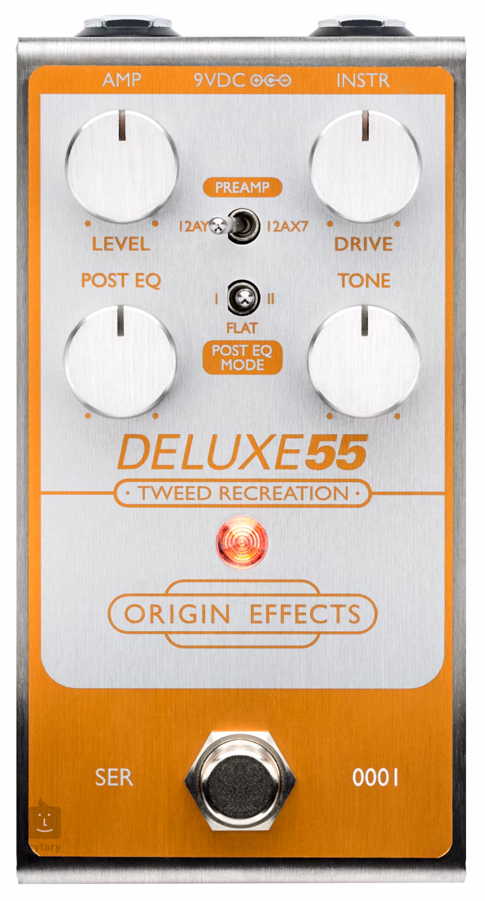 Z této krabičky dostanete spektrum zvuků od artikulovaných čistých tónů až po expozivní fuzz. Nejedná se o žádný sofistikovaný a vytříbený zvuk, ale o typický tvídový říz s neuvěřitelným stylem a charakterem. Deluxe55 disponuje inovativním obvodem Post EQ, který přizpůsobuje výstupní signál a zajišťuje kompatibilitu pedálu s jakýmkoliv typem aparátu. Najdete zde také přepínač Preamp, který vám umožní zvolit mezi dvěma charakteristickými zvuky elektronek 12AY7 a 12AX7. Krabička je vyrobena z prémiových součástek a ručně sestavena ve Velké Británii.