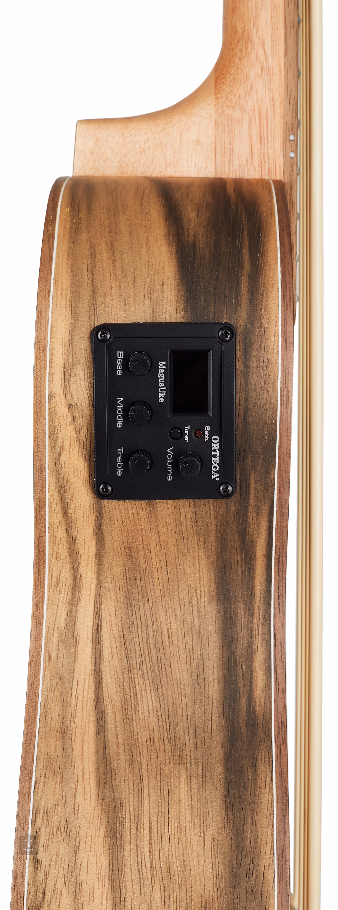 HYDRA-BSTE je dalším dvoukrkým modelem ukulele z řady Custom Built Series značky Ortega. V tomto případě kombinuje model elektroakustického basového ukulele s tenorovým, kdy vychází z designu nástrojů Ortega Lizard zkrášlených rytinami ještěrek.