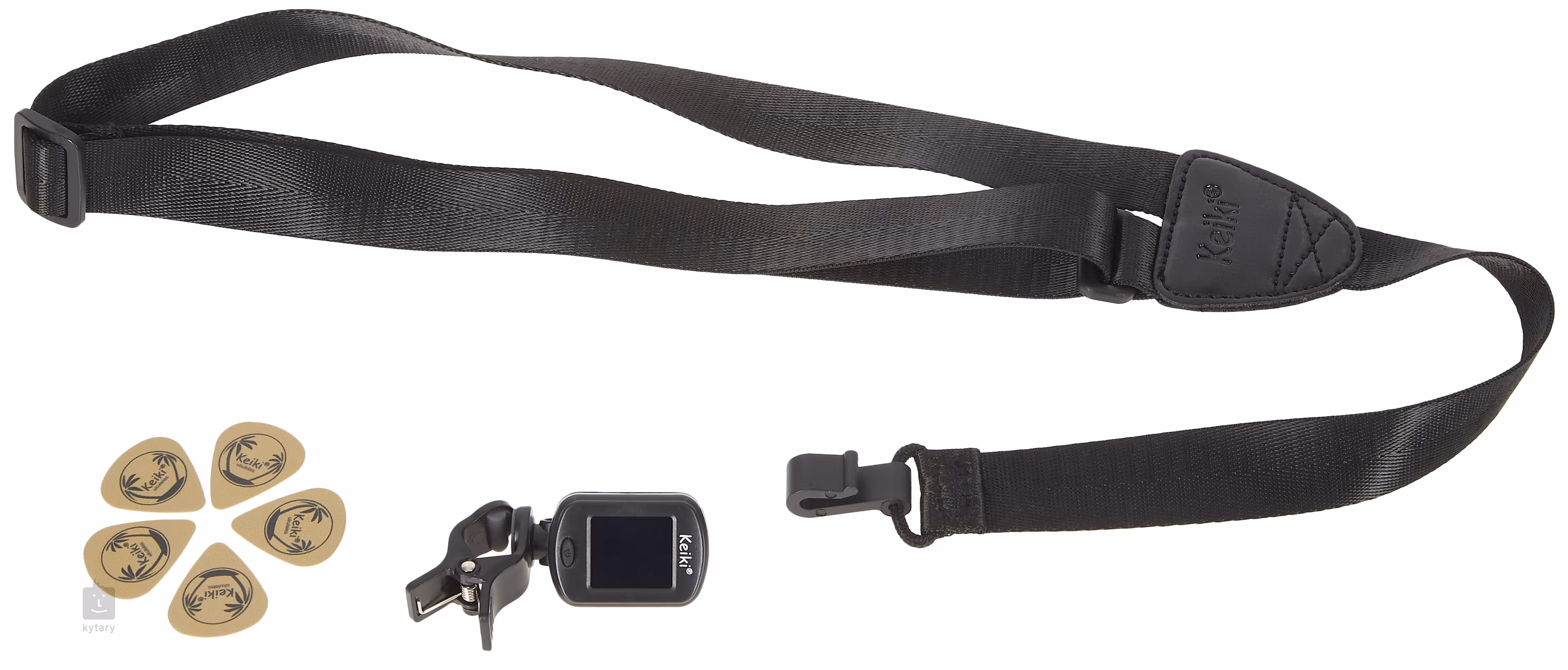 Součástí balení je klipová ladička, pět trsátek (medium), obal (drawstring bag) a popruh s úchytem v ozvučnici (vhodný pro ukulele bez tradičních dvoubodových úchytů na řemen).