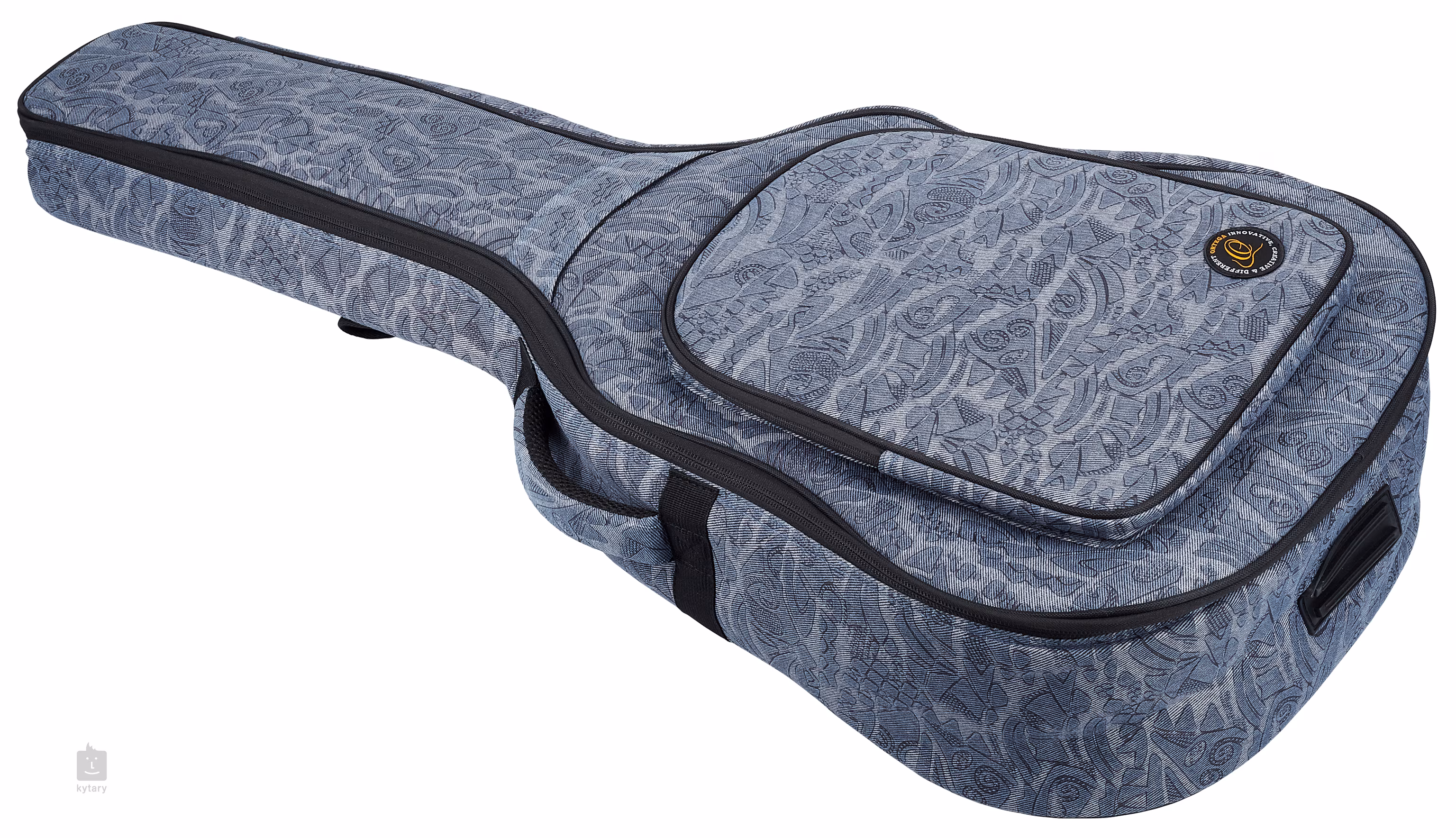 Nová série džínových obalů od firmy Ortega na první pohled zaujme použitým materiálem – kombinace plátna a bavlny v denimové úpravě nejen skvěle vypadá, ale je také příkladně odolná. Uvnitř váš nástroj ochrání 12 milimetrů silné polstrování a podšívka z měkkého černého nylonu, součástí je také držák krku s bezpečnostními suchými zipy. Na vnější straně obalu se nachází rozměrná kapsa pro uložení příslušenství, dvojice pohodlných nastavitelných popruhů a spolehlivý systém zipů. Díky své velikosti je obal perfektní volbou pro klasické kytary plné velikosti.