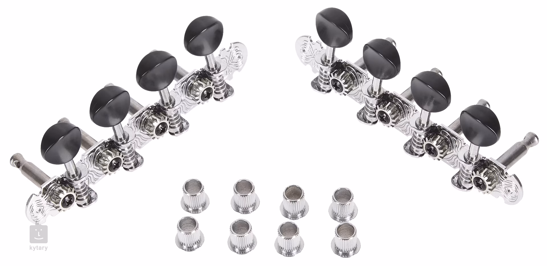 Ladicí mechaniky z řady Deluxe pro A-style mandolínu. Jsou vyrobeny z kovu v chromové povrchové úpravě, knoflíky jsou z odolného černého plastu. Převodový poměr je 14:1.