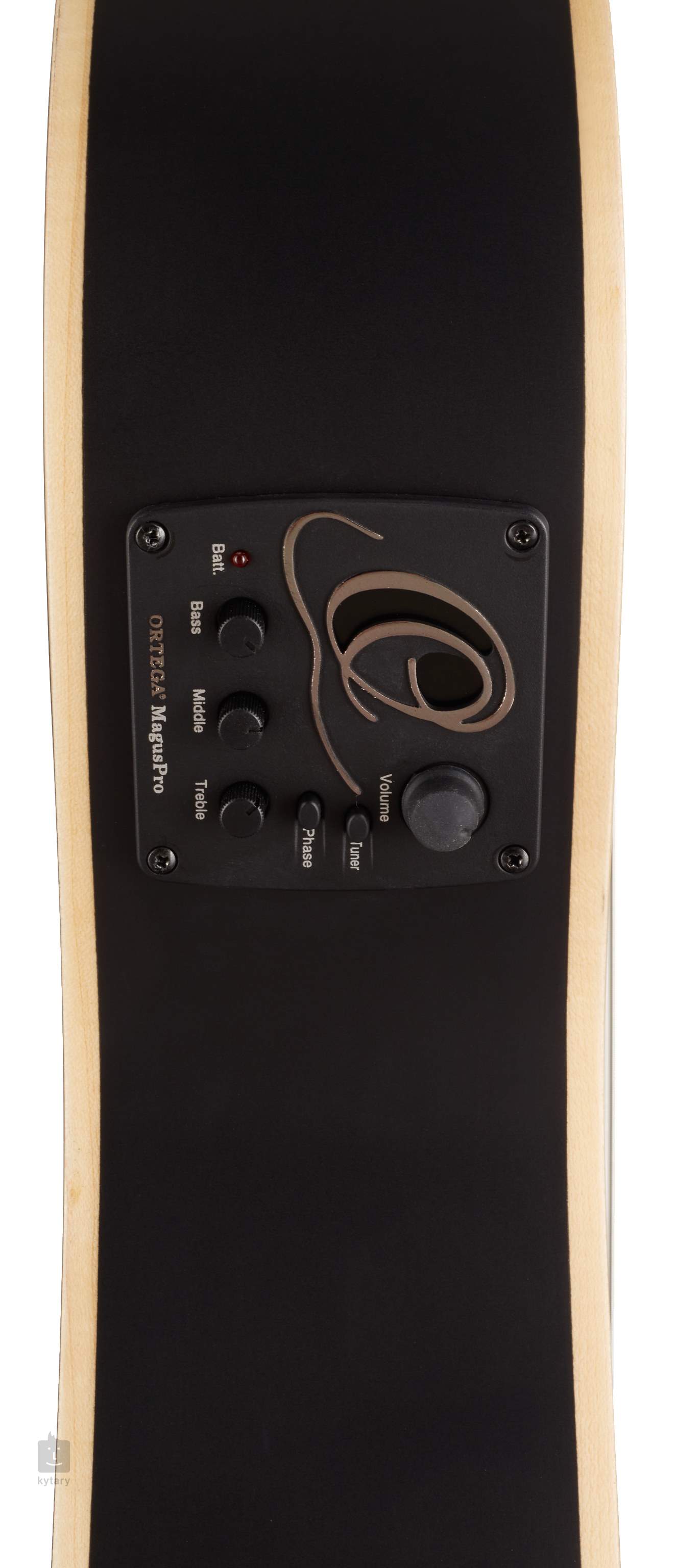 Tento konkrétní model je navíc osazen elektronikou Ortega MagusPro s integrovanou ladičkou, třípásmovým ekvalizérem, ovladačem hlasitosti a tlačítkem Phase s funkcí obrácení fáze (potlačení šumu).