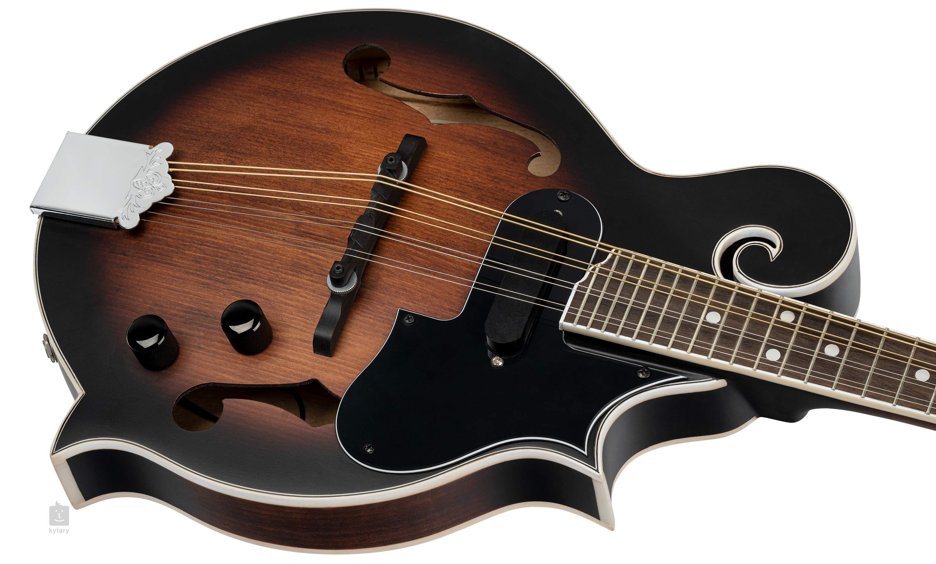 Tělo F mandolíny Ortega RMFE30-WB je zhotoveno z přední desky z překližovaného smrku a zad a lubů z překližovaného javoru, tělo zdobí finiš Satin Whiskey Burst. K javorovému krku je přilepen palisandrový hmatník osazený čtyřiadvaceti pražci.