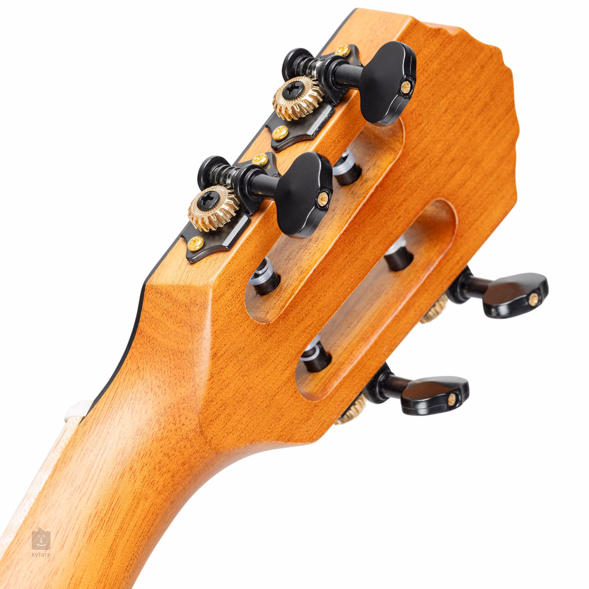 O ozvučení ukulele se stará elektronika Ortega MagusX/U v lubu nástroje s třípásmovým ekvalizérem, ovladačem hlasitosti a integrovanou ladičkou. Přibaleným USB-C kabelem jednoduše nabijete zabudovanou baterii. Struny jsou uchyceny v otevřených firemních ladicích mechanikách a kobylce z purpleheartu. Pěkné zpracování podtrhuje obvodová lemovka těla a hmatníku z fládrovaného javoru.