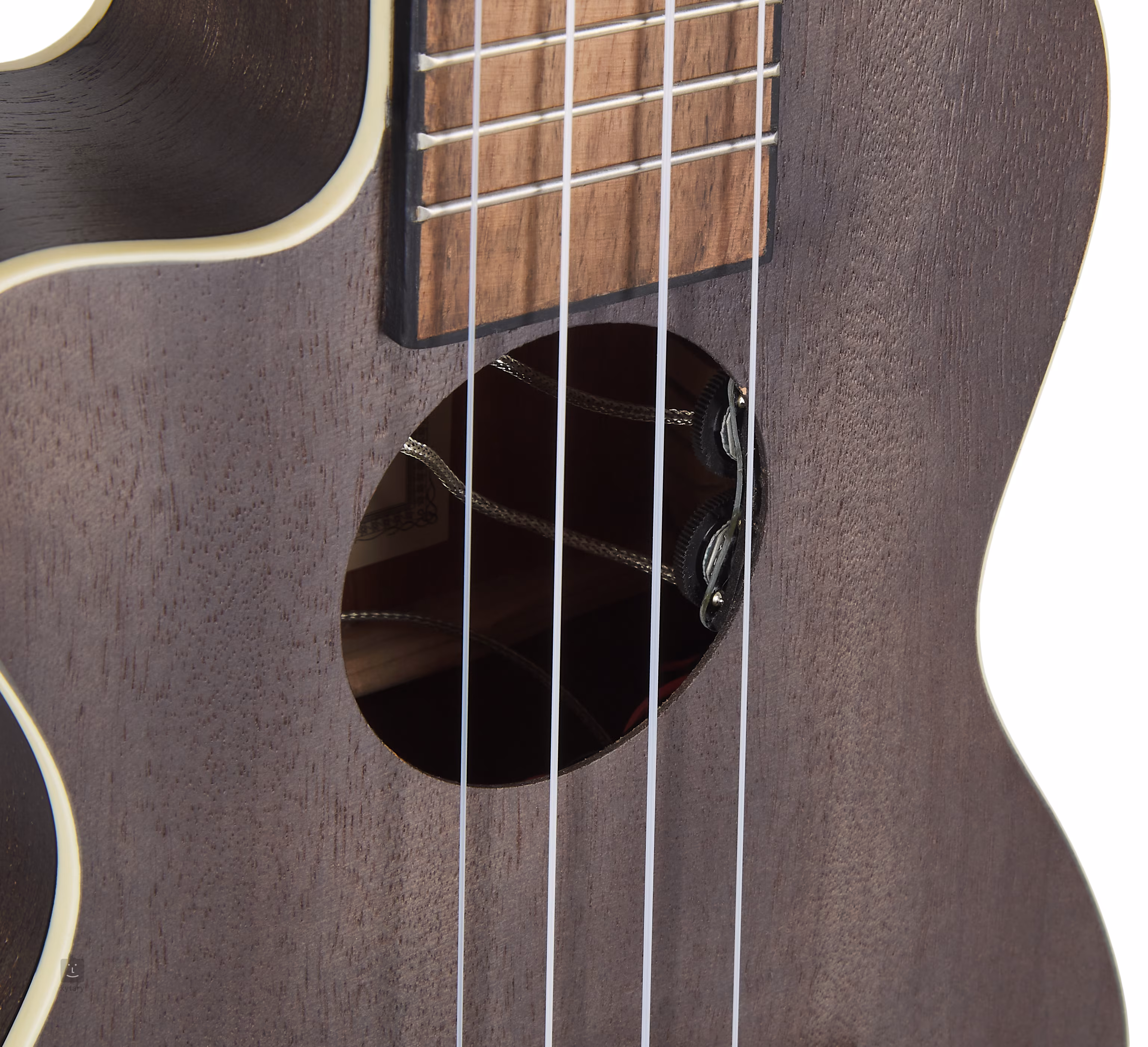 Přední deska tohoto ukulele je vyrobena z překližovaného dřeva okoumé, zadní deska a luby ze sapele. Top zdobí barevná úprava Coal Black a bílá obvodová lemovka z materiálu ABS. K mahagonovému krku je přilepen ořechový hmatník osazený osmnácti pražci a bílými pozičními tečkami. Struny jsou uchyceny v ořechové kobylce a uzavřených ladicích mechanikách kytarového typu (Die-Cast).