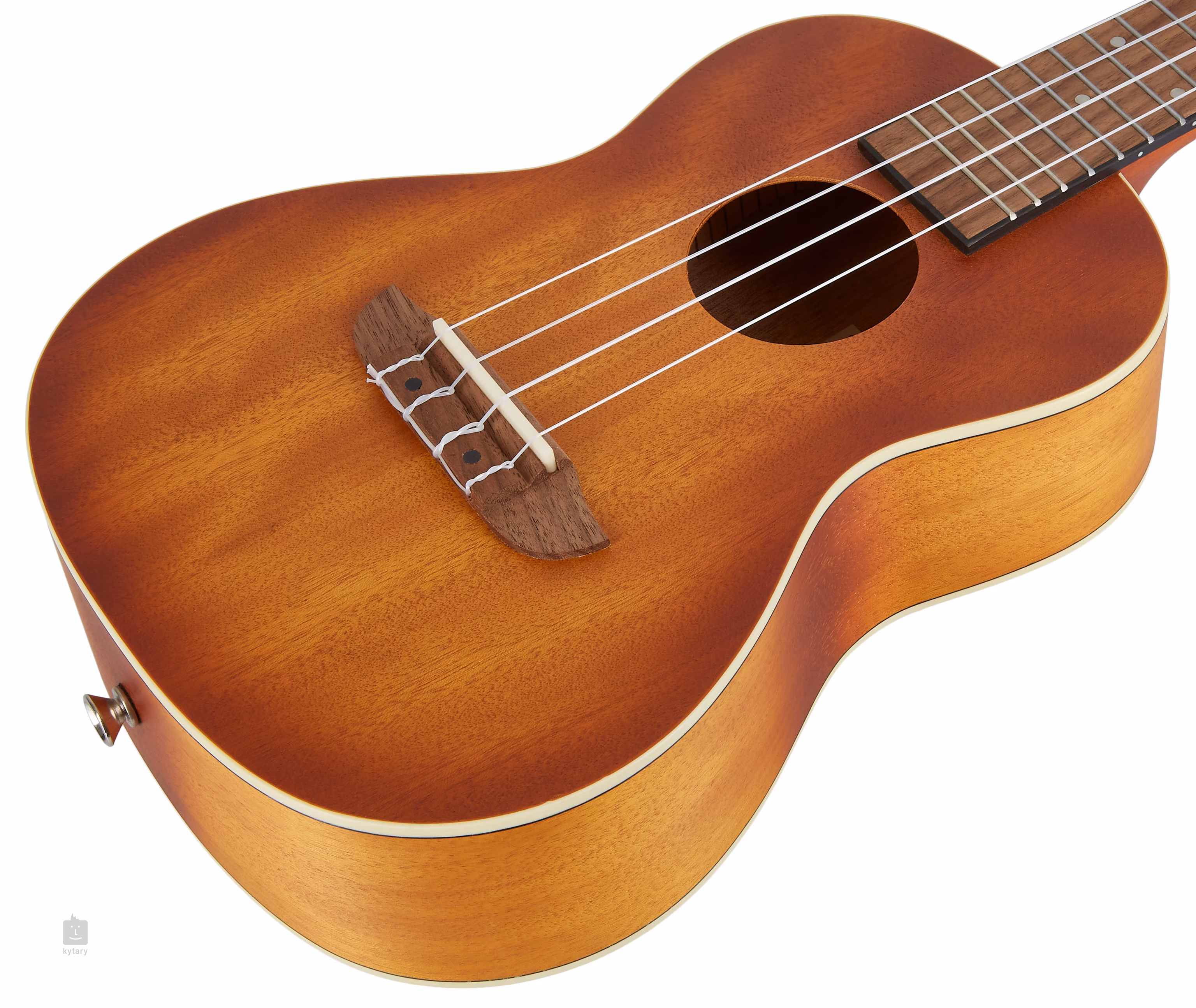 Přední deska tohoto ukulele je vyrobena z překližovaného dřeva okoumé, zadní deska a luby ze sapele. Top zdobí barevná úprava Dawn Sunburst a bílá obvodová lemovka z materiálu ABS. K mahagonovému krku je přilepen ořechový hmatník osazený osmnácti pražci a bílými pozičními tečkami. Struny jsou uchyceny v ořechové kobylce a uzavřených ladicích mechanikách kytarového typu (Die-Cast).