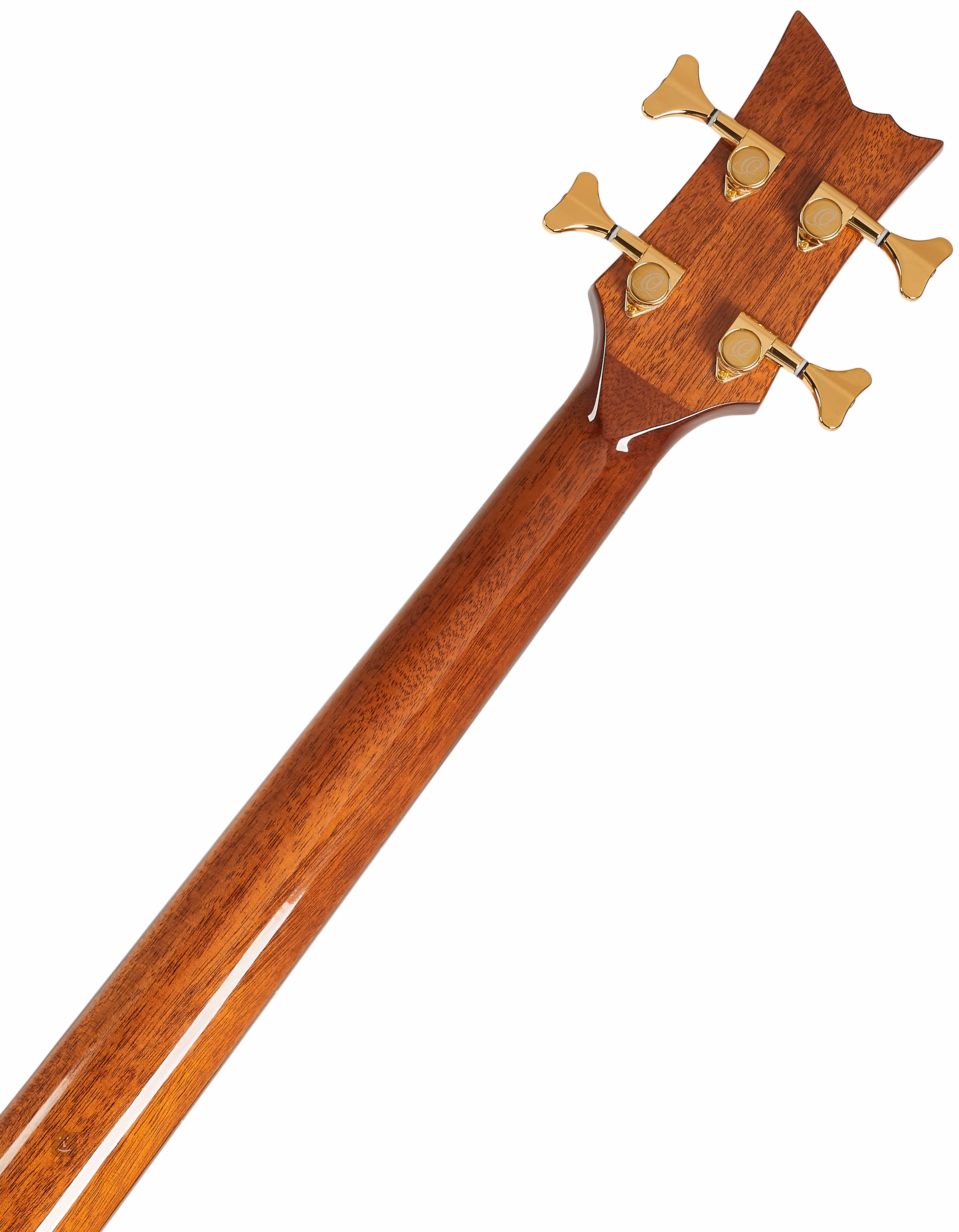 Možnost ozvučení, protože ozvučit akustickou baskytaru prostě chcete, nabízí preamp MagusPRO s třípásmovým ekvalizérem, fázovým invertorem a zabudovanou ladičkou. Pěkné zpracování podtrhují firemní die-cast mechaniky ve zlatém provedení, praktická opěrka ruky (armrest), obvodová lemovka z akácie, ořechová lemovka hmatníku a rozeta složená z perleti, javoru a ořechu.