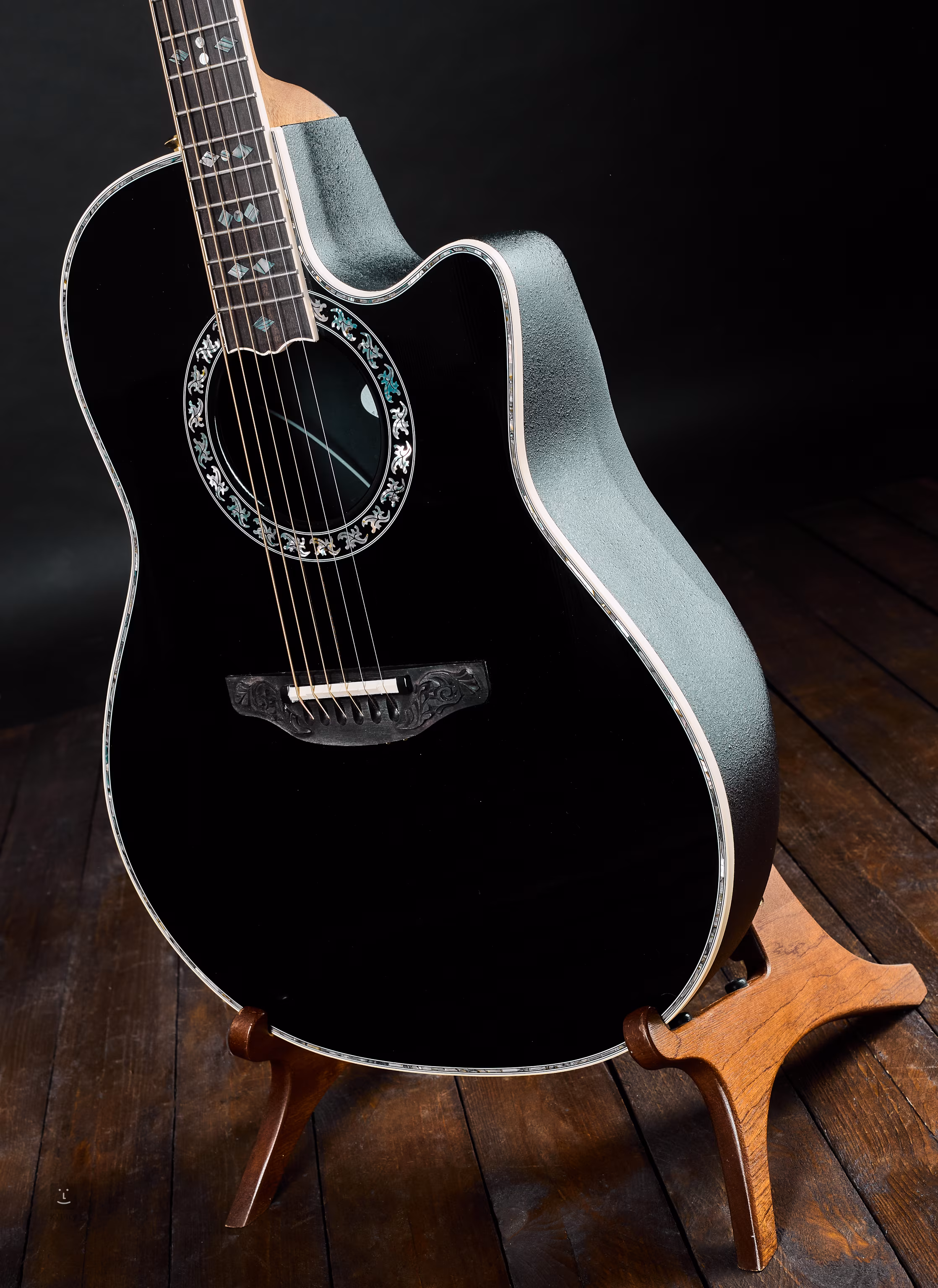 Krk je javorový, hmatník z ebenu. Tělo je typický Ovation - přední deska je sice z běžného masivního smrku, zbytek těla je však z uhlíkového vlákna - konstrukce disponuje speciálním vnitřním žebrováním Ovation A Bracing, díky kterému má nástroj velký zvuk se silnou projekcí tónu.