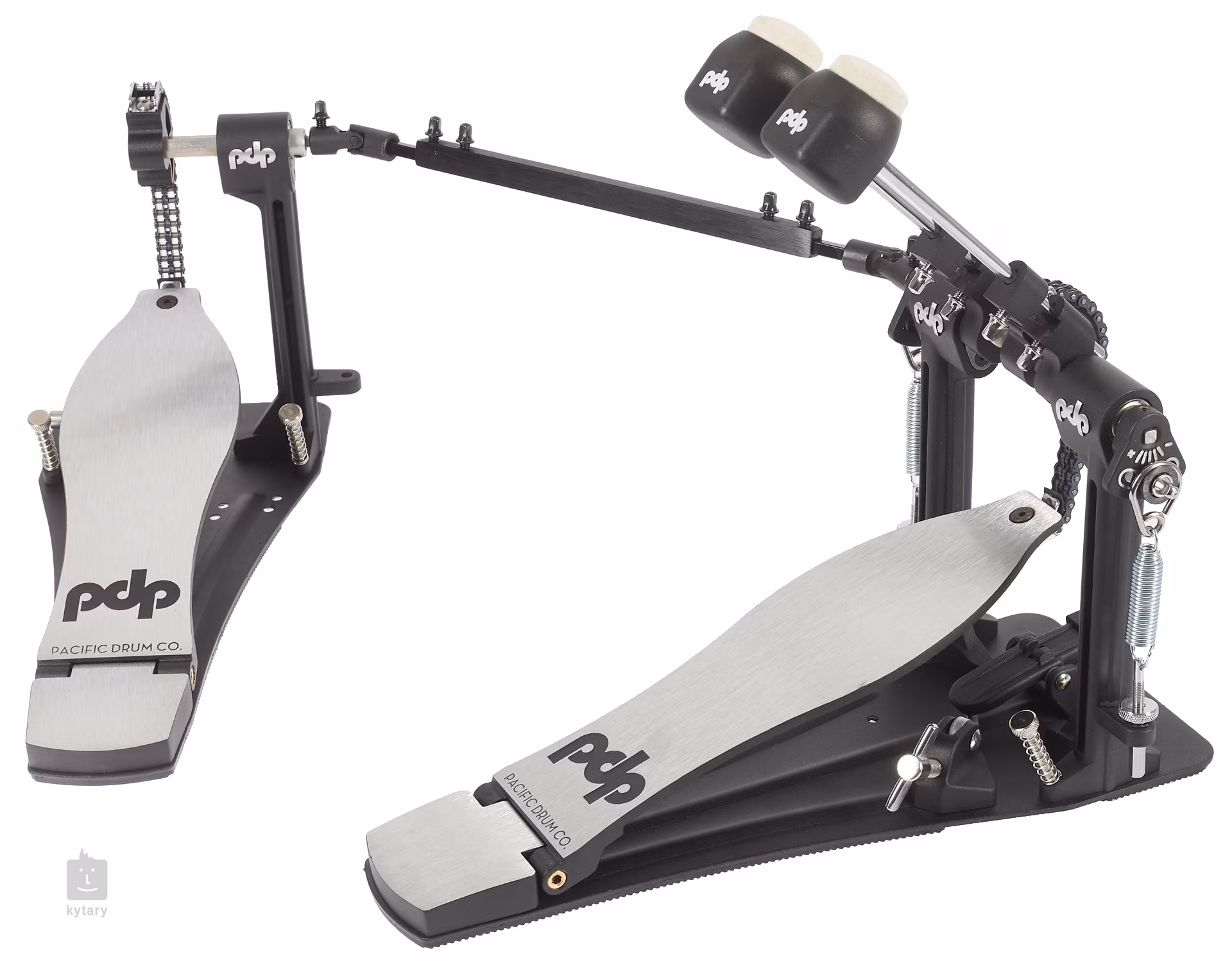 PDDPCO Double Pedal Concept Series je rychlý a responzivní double pedál k basovému bubnu s řetězovým double-chain převodem, lineární vačkou, dvoustranným beaterem, nastavením sklonu beateru, hladkým povrchem footboardu s integrovaným pantem s jehlovými ložisky a masivní ocelovou základnou s magnetickým ladícím klíčem.