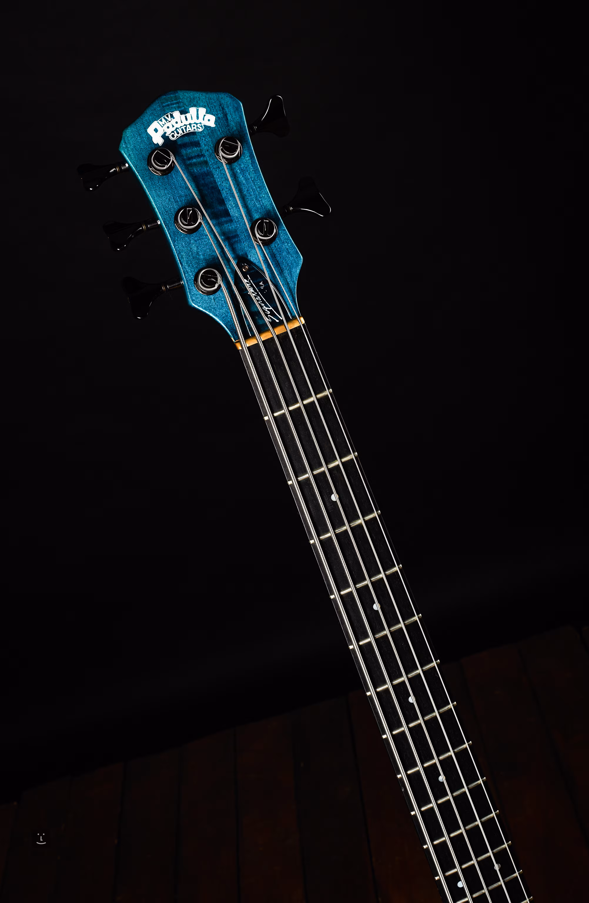 Tento nástroj v transparentním modrém laku nese spoustu drobných odřenin, na zadní straně je vícero bouchanců od pásku, nástroj je přes to v bezvadné kondici co se týče hratelnosti je perfektní. Patří k němu i originální kufr, ve kterém je originální klíč pro nastavování výztuhy. Dřívější majitel vyměnil z estetického důvodu zlaté mechaniky na černé (originální Pedulla), ty původní jsou přibaleny.