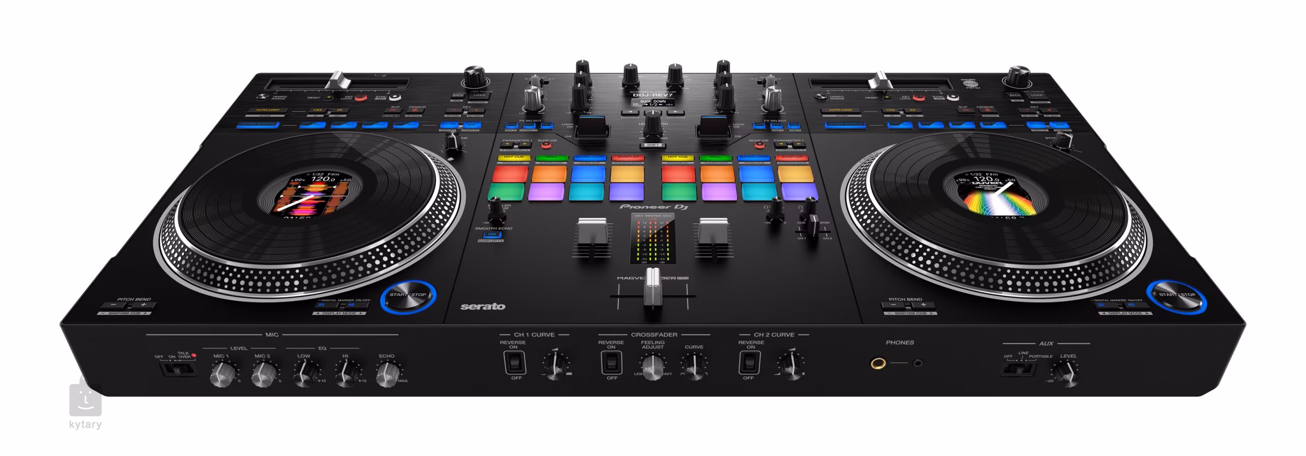 DDJ-REV7 je horkou novinkou od Pioneer DJ a je připraven pozvednou vaší kariéru DJ na další level. Jedná se o výkonný profesionální DJ mixpult se dvěma motorizovanými JOG wheel vhodný pro live performance i studiová session. Zároveň vám zprostředkuje velmi dynamické DJ battle v mixu nebo scratchování. K dispozici budete mít šestnáct RGB podsvícených ultra citlivých Padů, dva volume fadery a MAGVEL FADER PRO s posílenou stabilitou pro scratching. Srdcem DDJ-REV7 jsou potom sedmipalcové Jog wheel s LCD displejem a vinylovým povrchem, nebo integrovaná Beat FX jednotka s 22 efekty.