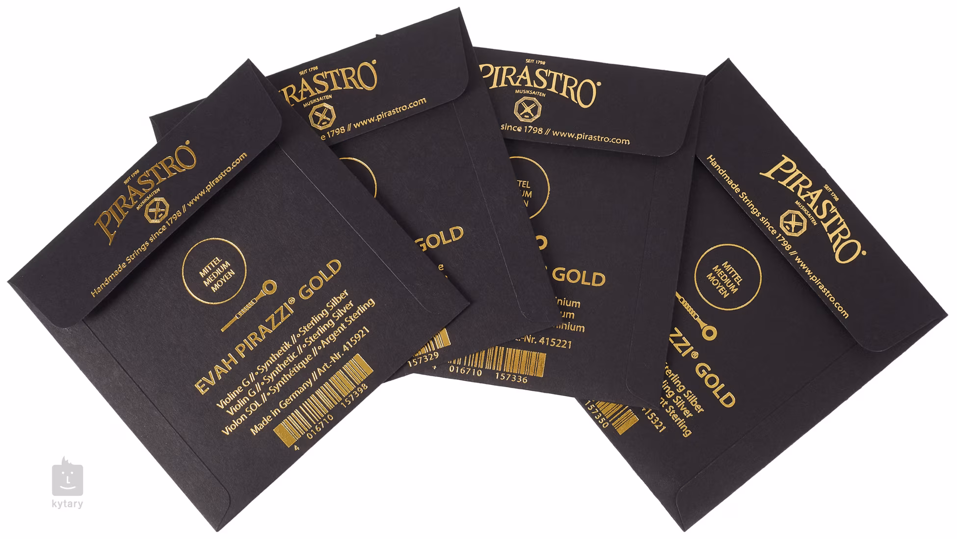 Struny Pirastro Evah Pirazzi Gold jsou vyrobeny z multivláknového syntetického jádra se zlatým a stříbrným opředením, které nabízí brilantní, plný zvuk se širokým spektrem barvy tónu. Výhodou syntetického jádra je absolutní stabilita ladění, která nijak nepodléhá změnám teploty a vlhkosti, struny navíc není nutné dlouze rozehrávat, přičemž svůj zvuk si poté zachovávají po dlouhou dobu.