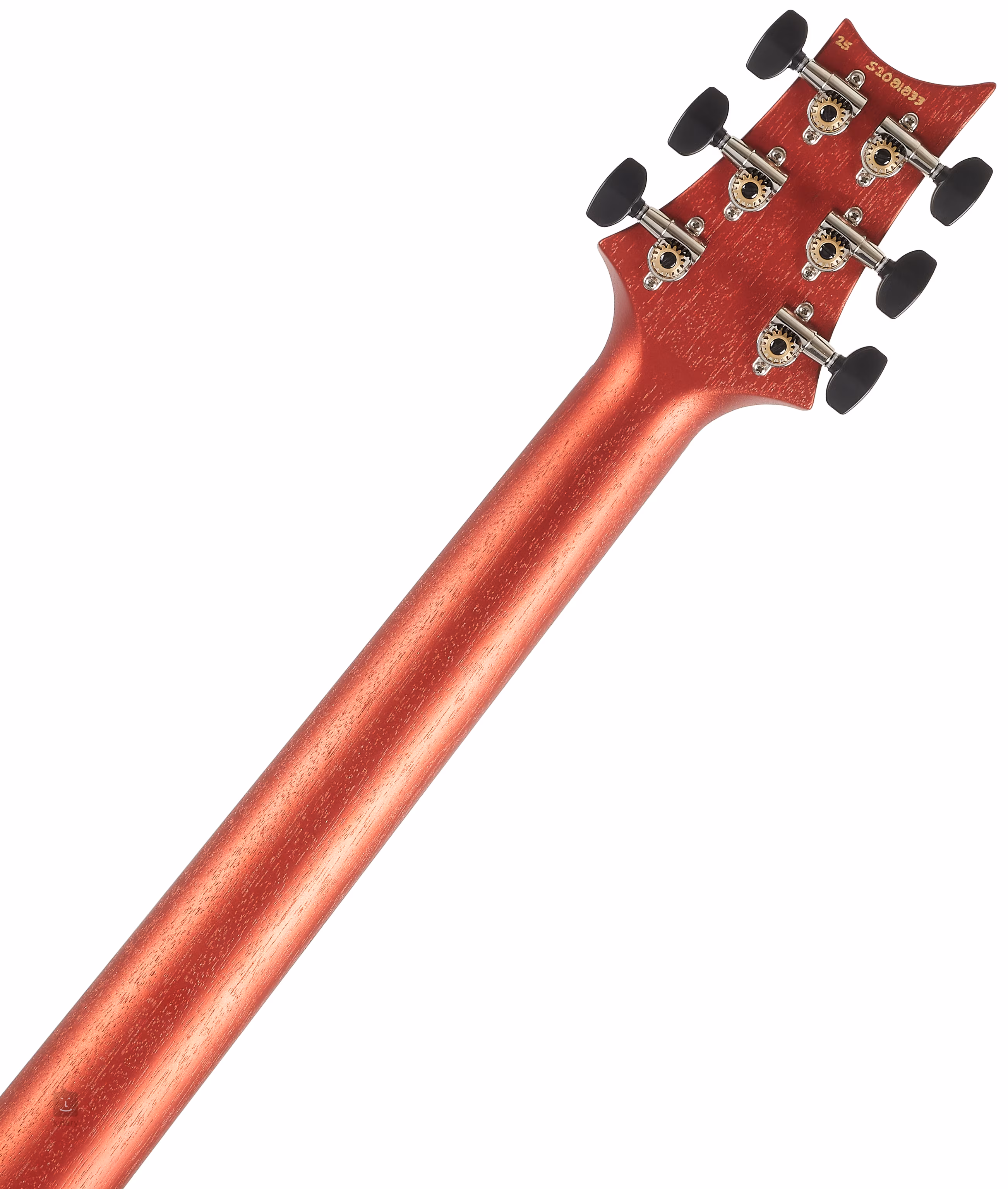 Pololubové mahagonové tělo kytary S2 Vela Semi Hollow Satin Red Apple Metallic kryje saténový nitrolak. K mahagonovému krku s profilem Pattern Regular je přilepen palisandrový hmatník osazený dvaadvaceti pražci. Orientaci na hmatníku usnadňují polohové značky v podobě ptačích siluet.