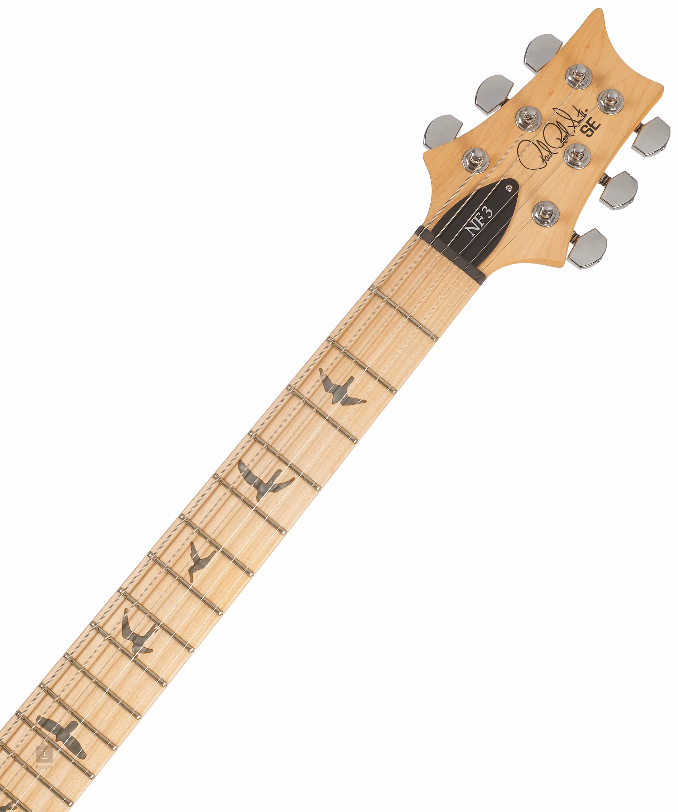Elektrické kytary PRS SE NF3 z cenově dostupnější řady SE nabízí originální PRS design těla se dvěma výřezy a kvalitu zpracování odpovídající věhlasu značky. Jedná se o zvukově všestranné a spolehlivé nástroje, které oceníte na koncertních šňůrách i studiové práci a žánrech jako rock, pop, funk, blues, country nebo jazz. Tělo kytary SE NF3 IM - Ice Blue Metallic je zhotoveno z topolu. Přišroubovaný javorový krk nabízí profil Wide Thin, plochu javorového hmatníku rozděluje dvaadvacet pražců. Orientaci na hmatníku usnadňují polohové značky v podobě perleťových ptačích siluet. Snímače PRS Narrowfield jsou v podstatě mini humbuckery s veškerými prvky standardních humbuckerů primárně zaměřené na hráče, co hledají silný plný zvuk s charakterem single-coil snímačů a bez otravného brumu. Tři snímače Narrowfield DD (Deep Dish) “S” nabízí větší cívky umožňující větší vinutí drátu a extra kusy kovu mezi magnety pro silnější a pevnější zvuk. Charakter zvuku upravíte pomocí standardních ovladačů. Struny jsou uchyceny v PRS ladicích mechanikách a patentovaném PRS tremolu. Kytara je dodávána v obalu (gig bag). Kytary PRS z dílny Paula Reeda Smithe platí za jedny z nejuniverzálnějších a nejspolehlivějších nástrojů vůbec. Díky skvělému zvuku a hernímu komfortu si je oblíbili například Santana nebo Mark Tremonti. V nabídce značky naleznete kromě osvědčených klasik i levoruké modely, sedmistrunky, barytonové a pololubové kytary nebo signature modely známých kytaristů. Nástroje s označením SE jsou vyráběny v Indonésii. O jejich kvalitu se však nemusíte nijak obávat – výrobní standardy a pečlivá výstupní kontrola jsou samozřejmostí.