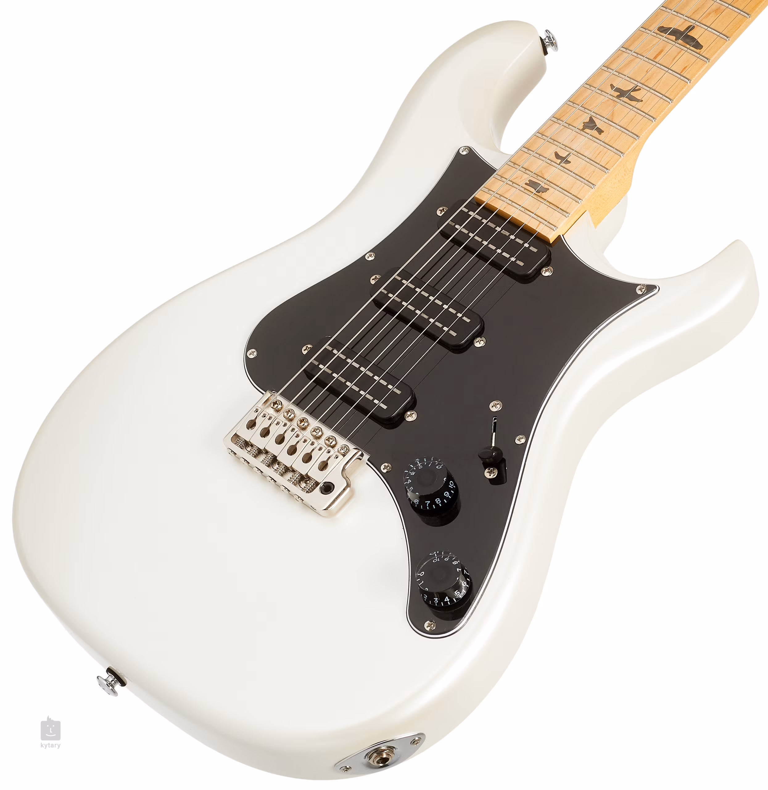 Tělo kytary SE NF3 WP - Pearl White je zhotoveno z topolu. Přišroubovaný javorový krk nabízí profil Wide Thin, plochu javorového hmatníku rozděluje dvaadvacet pražců. Orientaci na hmatníku usnadňují polohové značky v podobě perleťových ptačích siluet.