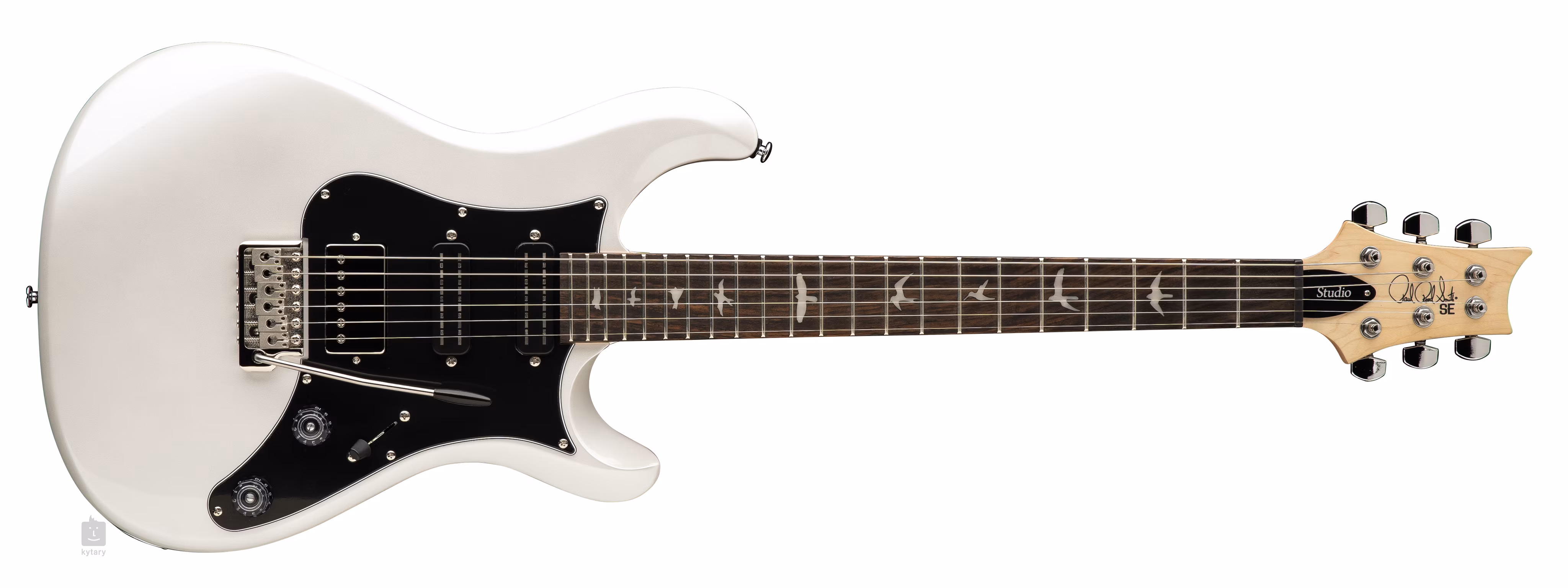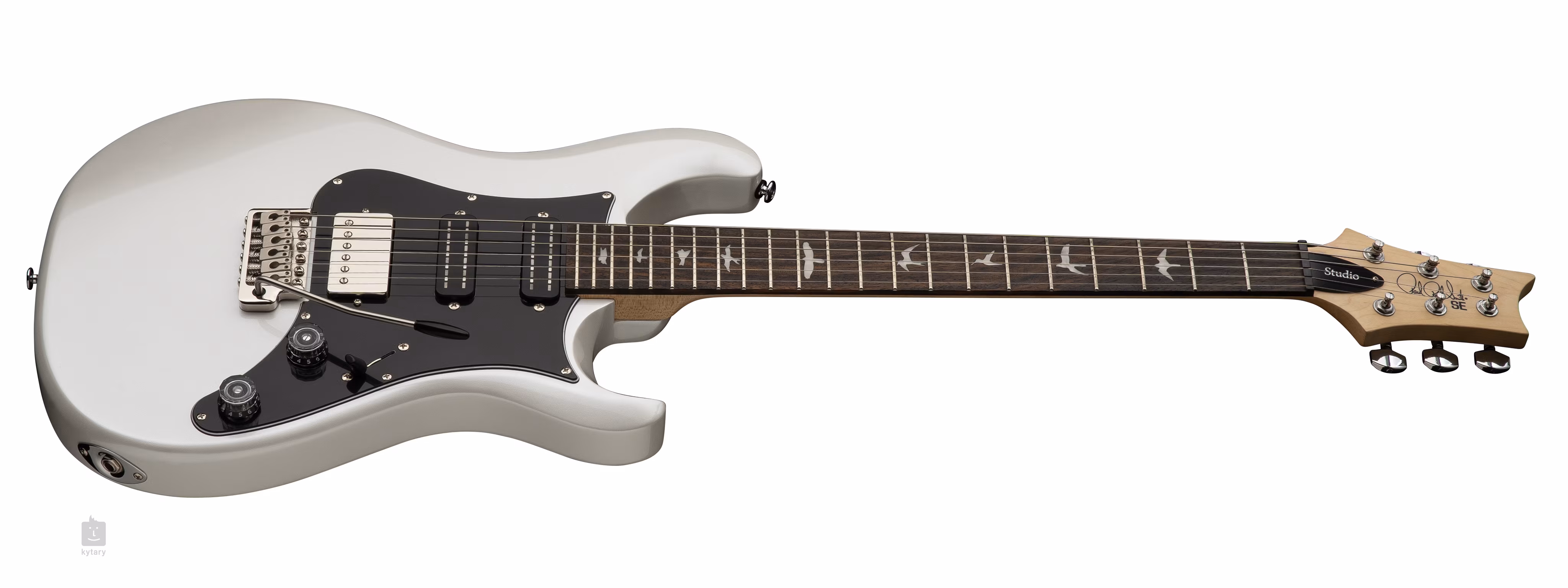 Tělo elektrické kytary PRS SE Studio Standard Pearl White s typickým dvojitým PRS výřezem je zhotoveno z mahagonu. K přišroubovanému javorovému krku s profilem Wide Thin je přilepen palisandrový hmatník osazený dvaadvaceti pražci. Orientaci na hmatníku usnadňují PRS polohové značky v podobě ptačích siluet.