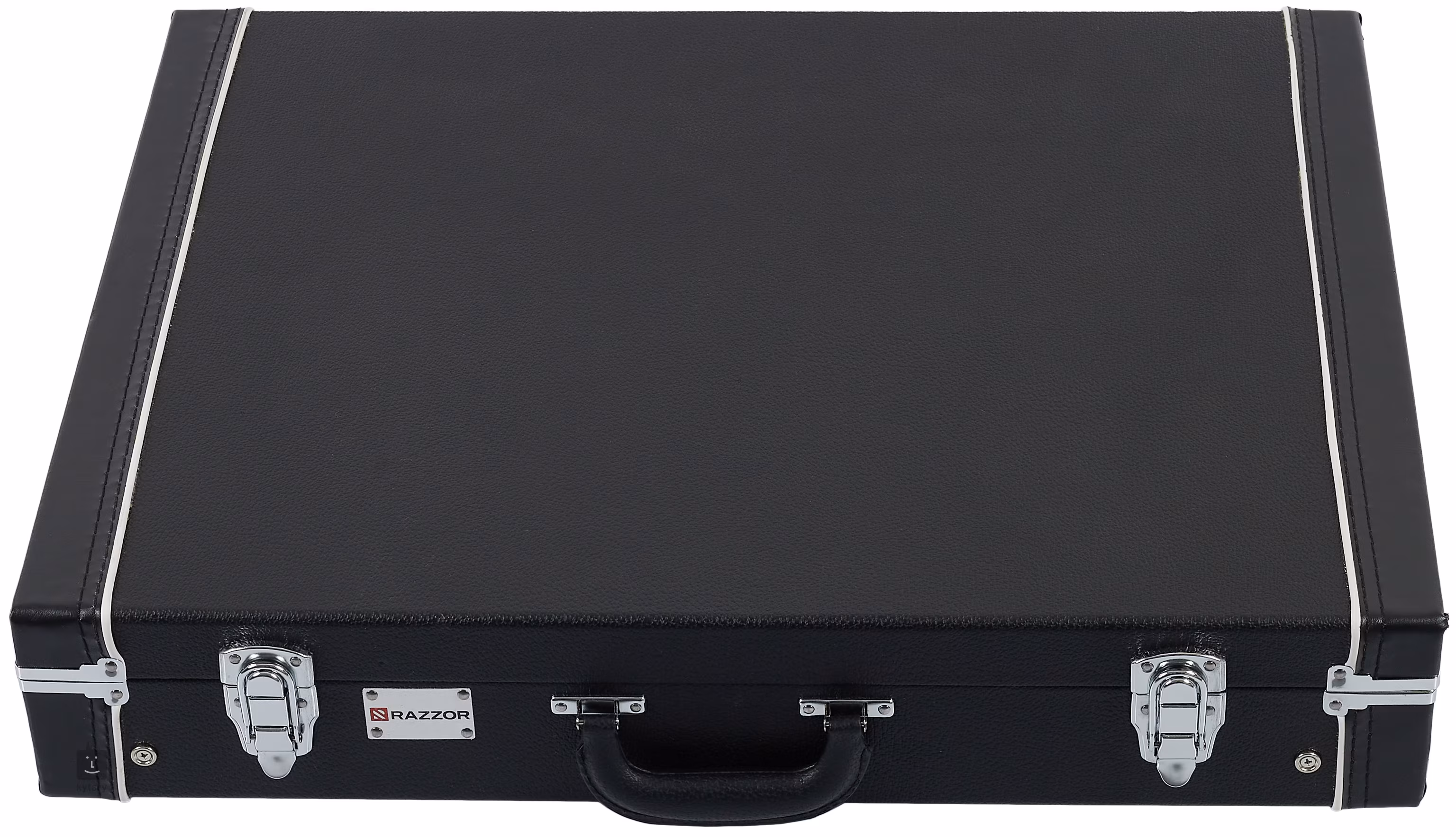 Tento elegantní kufr od značky Razzor v sobě ukrývá překvapení v podobě praktického nástrojového stojanu. Jeho vypolstrovaný vnitřek je schopen poskytnout potřebný prostor a pohodlí šeti elektrickým kytarám nebo baskytarám. Ve složeném stavu zabírý minimum místa a je tak ideální volbou pro cestující muzikanty.