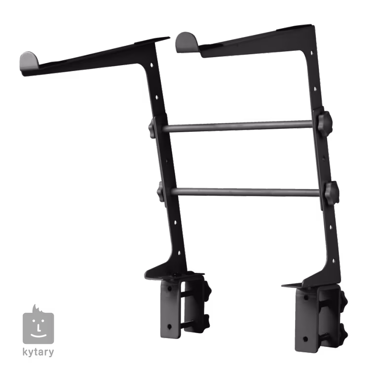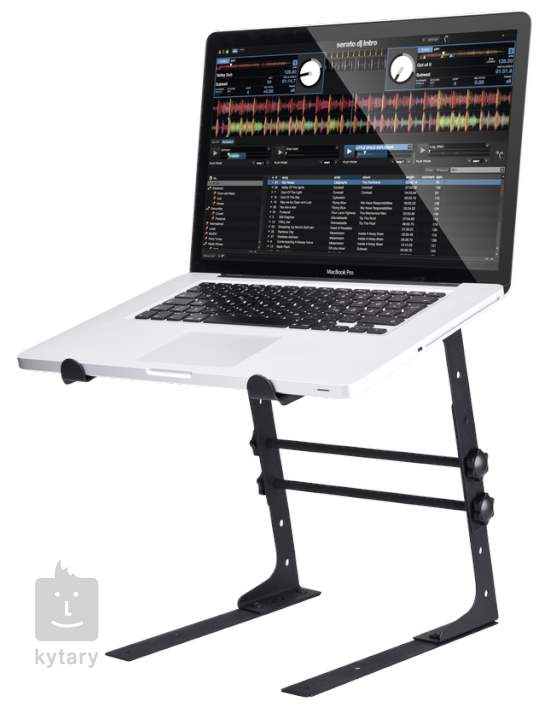Kvalitní stojan na notebooky vhodný pro DJs. Disponuje nastavitelnou šířkou pro všechny současné velikosti laptopů a posltrování pro zabránění pohybu a vzniku vibrací. Stojan můžete připevnit ke konzoli, stolu nebo ho nechat jen tak samostatně.