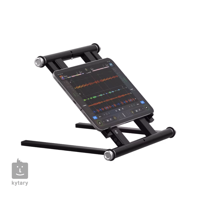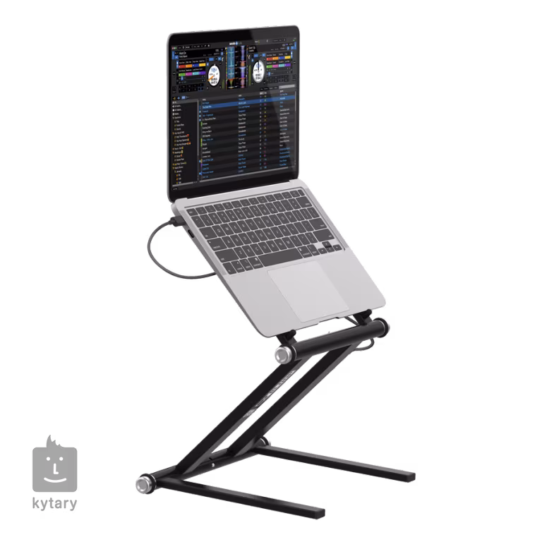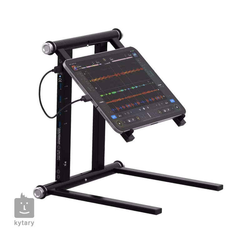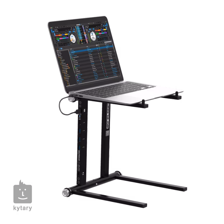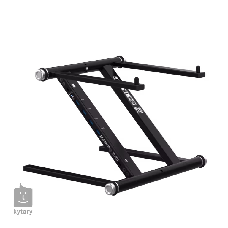 Kvalitní stojan na notebooky a tablety, obsahuje USB napájecí lištu a je vhodný pro DJs na studiové sesssion nebo live performance. Disponuje konstrukcí kompatibilní se všemi současnými velikostmi laptopů (11“-18“) a pogumovanými prvky pro zabránění pohybu a vzniku vibrací.