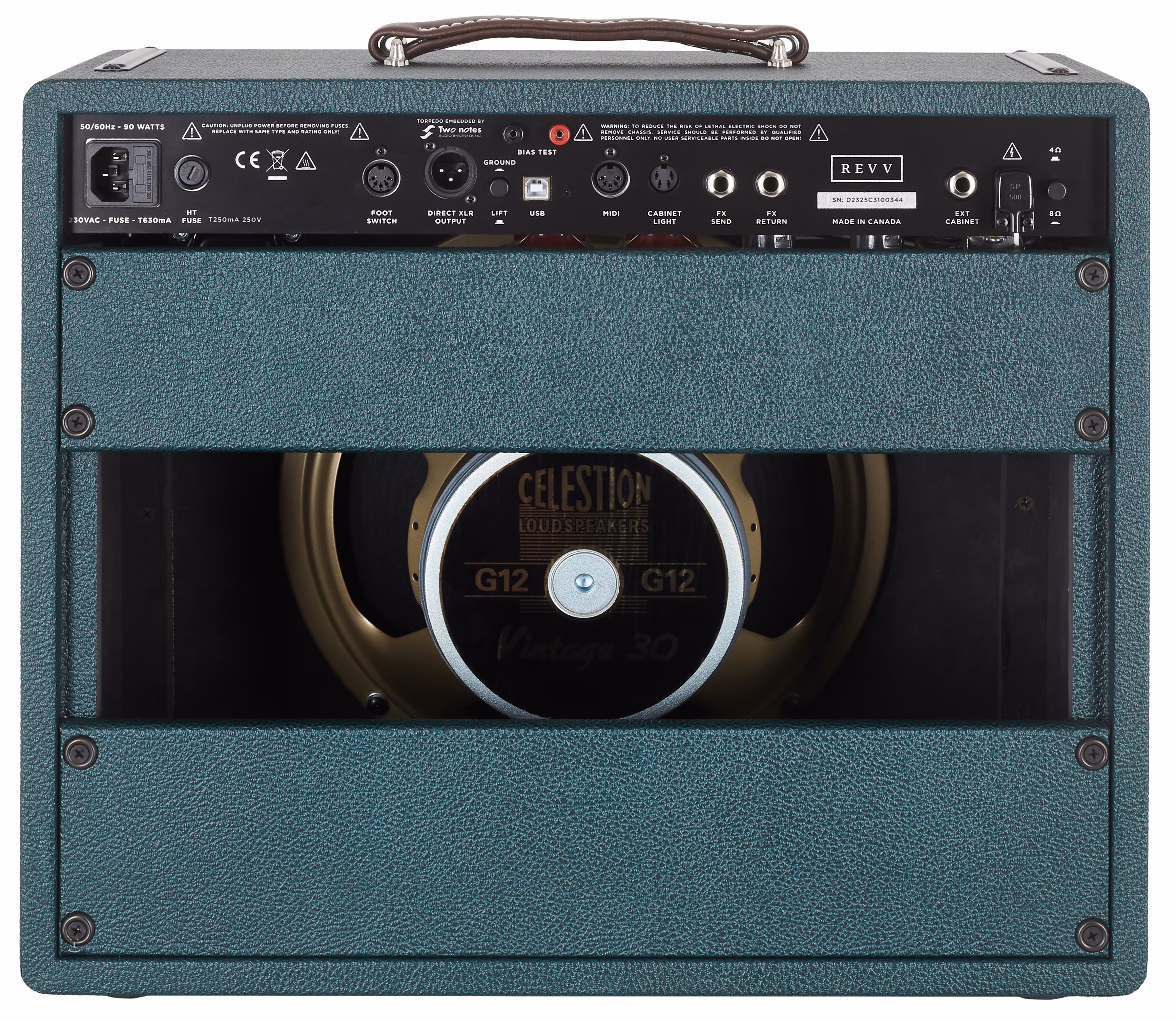 D25 Emerald Green je kytarové lampové kombo kanadské značky Revv s přepínatelným výkonem 25/5 W, dvanáctipalcovým reproduktorem Celestion Vintage 30, zabudovaným reaktivním loadboxem a virtuálními reproboxy Two Notes Torpedo, které vám nabídne krásně čisté tóny i bluesrockový overdrive. Představuje tak ideální platformu pro pedálové efekty (kombo má efektovou smyčku s bufferem).