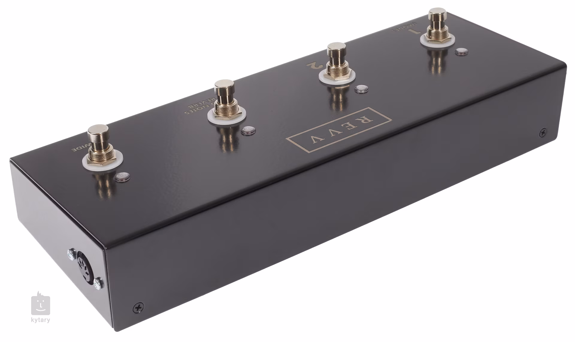 G20 Amplifier Footswitch je nožní přepínač ke kytarovému zesilovači Revv G20, kterým budete přepínat mezi kanály, mody Aggression, vypínat/zapínat voicing switch “Wide” a Two Notes reverb a vyvolávat oblíbená nastavení/presety.