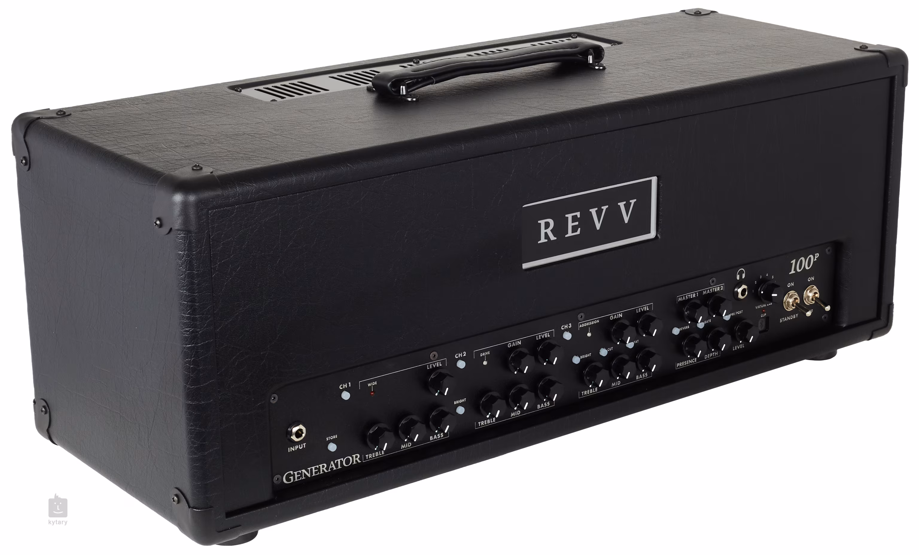 Generator 100P MKIII je lampový kytarový zesilovač kanadské značky Revv s přepínatelným výkonem 120/10 W, který vám nejen nabídne tři kanály parádního lampového zvuku vytvořeného s pomocí zpětné vazby od mnoha špičkových umělců a profesionálních session kytaristů, ale i moderní funkce v podobě stereo-out reaktivního loadboxu s virtuálními reproboxy Two Notes Torpedo, kompatibilitu s MIDI a Bluetooth, zabudovaný Noise Gate, digitální reverb, efektovou smyčku a další funkce.