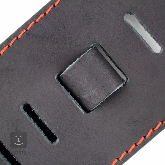 Exkluzivní kytarový popruh z prvotřídní kůže s matným povrchem a lehce patinovaným efektem. Neobvyklá šířka 9 centimetrů nabídne úlevu vašim zádům i při použití těch nejtěžších nástrojů, originální design zajistí kontrastní červené prošívání na okrajích.