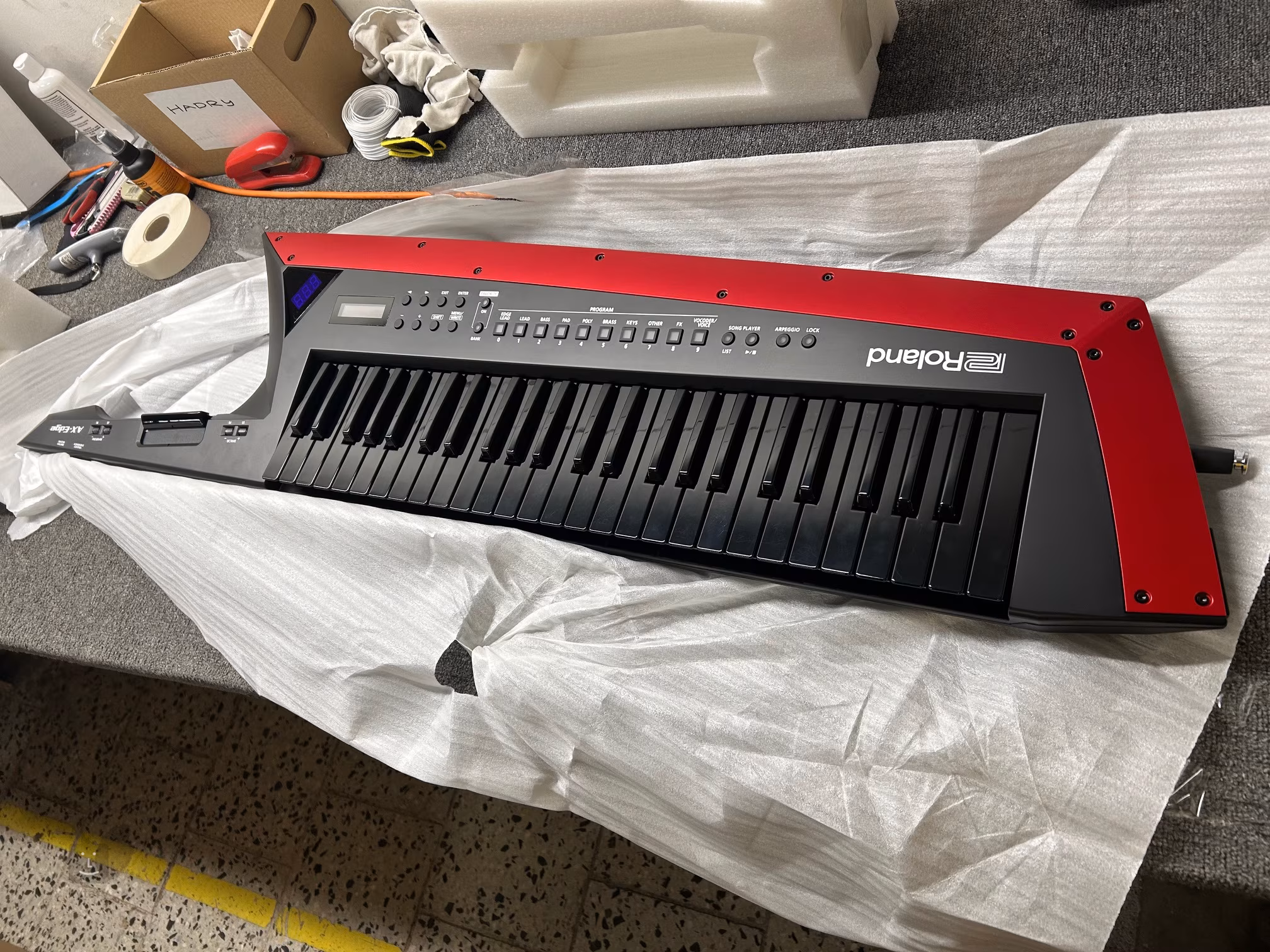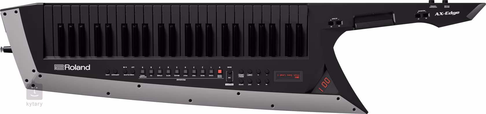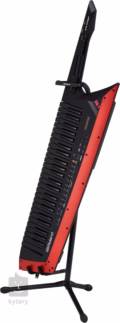 AX-Edge je stylový keytar, díky němuž budete na podiu jednoduše nepřehlédnutelní. Tento kytarový keyboard svým vzhledem připomíná ostrý sekáček na maso a jeho hrot si navíc můžete upravit přesně podle svých představ – jeden extra kus najdete v balení. S tímto nástrojem se kreativitě nekladou v žádném směru. Srdcem těchto kláves je 320 zvuků pečlivě vybraných tak, aby se spolehlivě prosadily v mixu a odpovídaly nárokům moderních i tradičních hudebních stylů. Vybírat můžete mezi basovými zvuky, plochami i agresivními leady. K oblíbeným zvukům lze také snadno přistupovat pomocí tlačítek. Zvuky si můžete přizpůsobit pomocí aplikace AX-Editor bezdrátově přímo z vašeho telefonu. Samozřejmostí je možnost vrstvení jednotlivých zvuků a rozdělení klaviatury. K dispozici jsou celkem čtyři části + vokodér, který lze vrstvit s ostatními zvuky. V efektovém parku se, kromě vokodéru, nachází ekvalizér, několik chorusů a reverbů, multiefekty IFX a master kompresor a ekvalizér pro profesionální doladění celkového zvuku. Na krku najdeme modulační pruh, lištu pro ovládání výšky tónu, portamento, hold, přepínání oktáv a programu. Řada ovládacích prvků se dá také přizpůsobit konkrétním potřebám hráče. Pro snadnou orientaci na podiu jsou na přením panelu dva displeje s informacemi o programu. Nechybí zabudovaný arpeggiator, ani song-player, takže se ve vypjatých chvílích můžete plně soustředit na publikum a samotné hraní nechat na nástroji. Nakonec je třeba zmínit možnost provozu na baterie (okolo čtyř hodin), USB slot pro uložení nastavení a Bluetooth MIDI, pomocí nějž keytar komunikuje například s vaším telefonem.