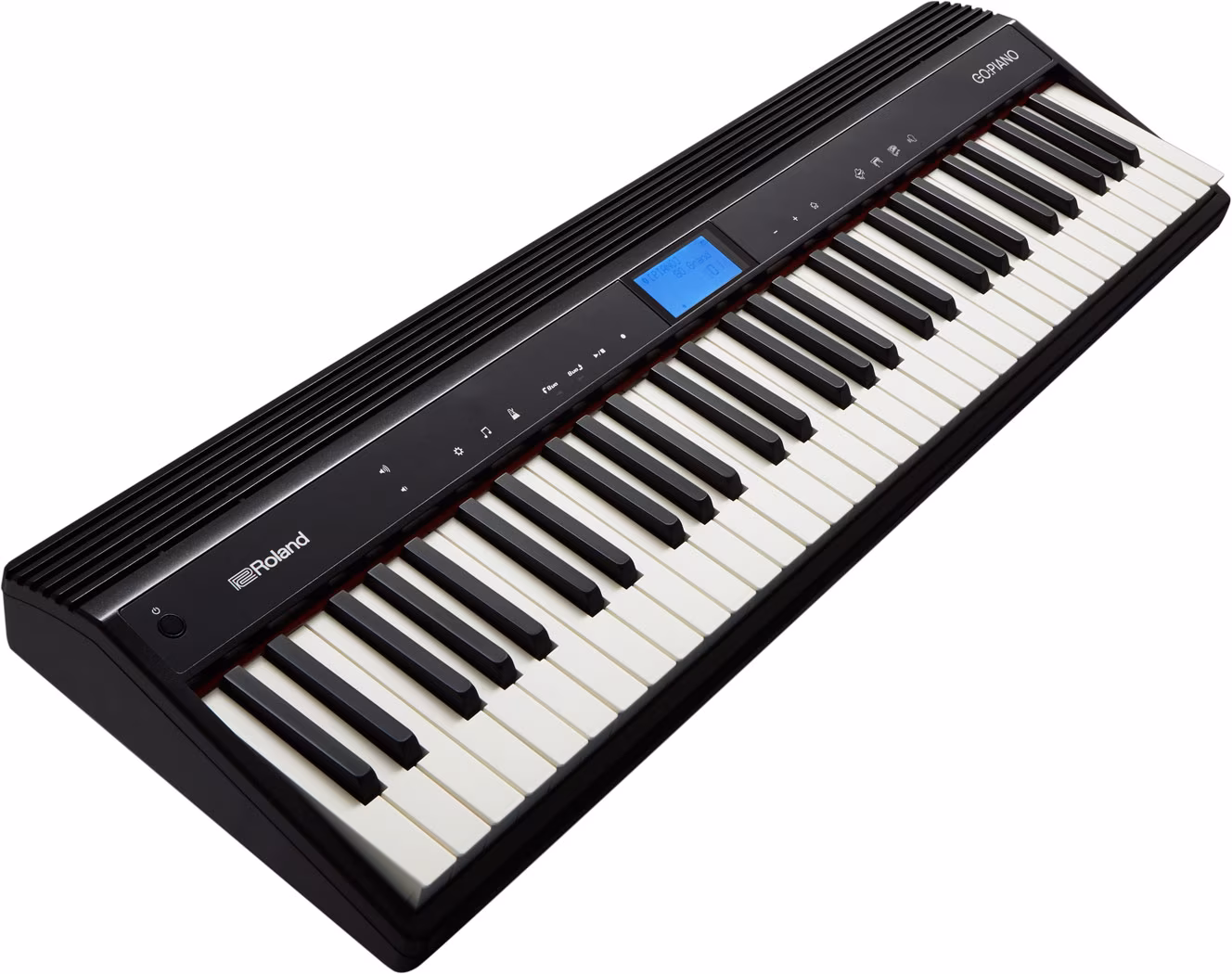 Výrobky Roland ze série GO uspokojí veškeré vaše hudební potřeby, ať už se nacházíte kdekoliv. Nepotřebují napájení ze sítě a díky kompaktním rozměrům je můžete mít neustále po ruce. Pokud vás přepadne múza cestou na koncert nebo při cestování vlakem či autobusem, GO:PIANO vám bude vždy k dispozici.