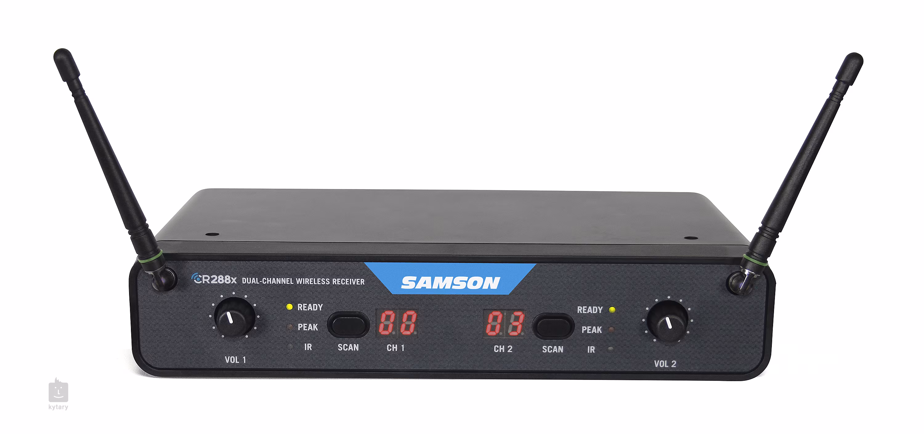 Na přední straně přijímače najdete dva nezávislé potenciometry pro nastavení hlasitosti, tlačítko pro skenování dostupných frekvencí a ukazatele zvoleného kanálu, párování, clippingu signálu a kontrolku zapnutí systému. Zadní strana je pak vybavena balancovaným XLR výstupem pro každý kanál a společným 6,3 mm Jack výstupem.