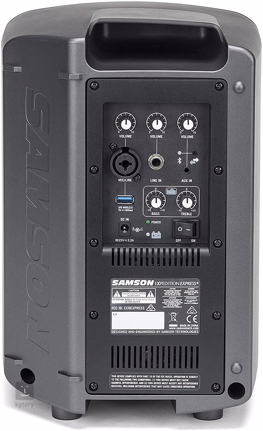 Vestavěný 3-kanálový mix nabízí jeden vstup s kombinovaným konektorem XLR/Jack pro připojení symetrického mikrofonního signálu, nebo signálu s linkovou úrovní, dále linkový vstup s konektorem Jack a vstup s konektorem Jack 3.5 mm pro připojení externího zařízení MP3, mobilního telefonu, tabletu atd. Každý kanál je vybaven vlastním ovladačem hlasitosti. Možnosti boxu Express+ je možné dále rozšířit připojením bezdrátového setu z řady Samson XPD. Samson Express+ má zabudovaný USB port pro připojení setu XPD, který lze zakoupit samostatně. Lze tak získat absolutně mobilní zařízení s připojeným bezdrátovým setem bez nutnosti zajišťovat napájení přijímače ze setu XPD.