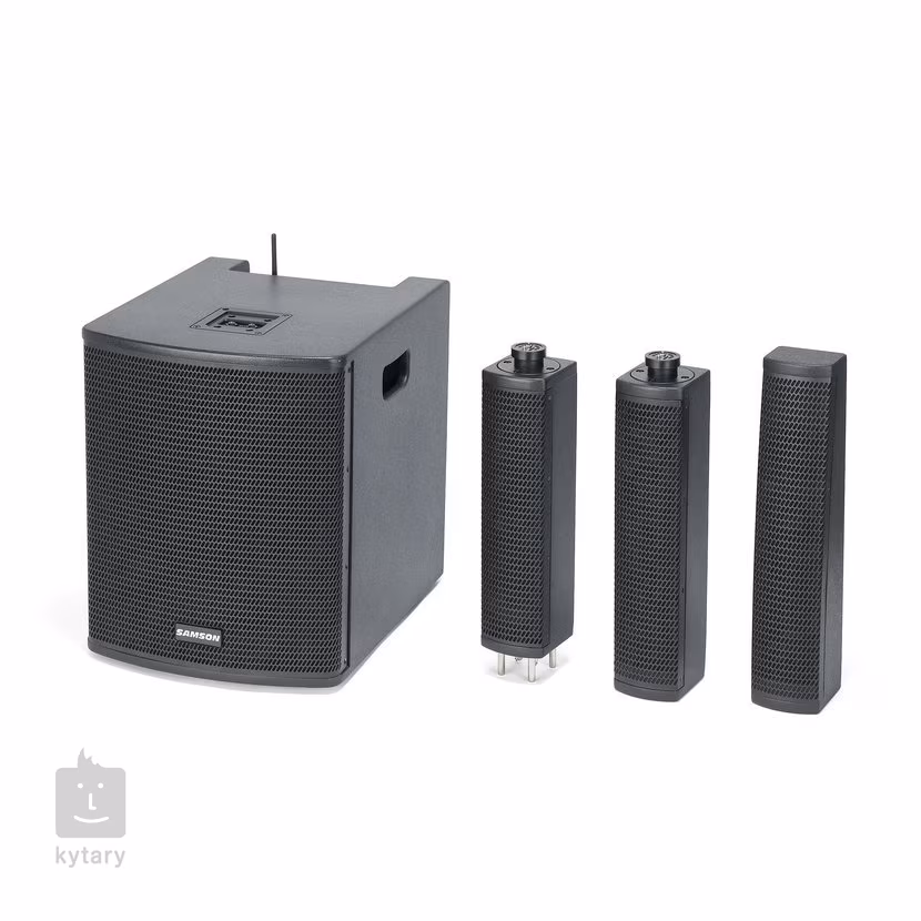 Subwoofer disponuje 12“ basovým reproduktorem o výkonu 350W, stejného výkonu potom dosahuje trojice satelitů s osmi 3,5“ výškovými reproduktory. Satelity můžete navíc otáčet na obě strany o 90 stupňů. Integrovaný mixpult nabízí dva kombinované XLR/Jack konektory pro mikrofony a hudební nástroje. Na druhém kanálu můžete využít stereo RCA konektorů pro připojení hudebního přehrávače nebo DJ pultu a třetí kanál je potom vyhrazen pro zařízení s bezdrátovým připojením. XLR výstup slouží pro připojení do dalšího PA nebo mixážního pultu, Součástí balení je ochranný obal pro trojici satelitů.