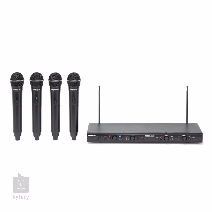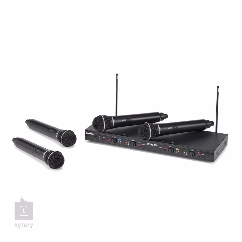 Samson Serie Stage 412 je čtyřkanálový bezdrátový set s čtveřicí dynamických mikrofonů do ruky. Tento set pracuje v pásmu 173MHz -198MHz a vysílací frekvenci lze nastavit pomocí IR paprsku. Mikrofony jsou osazeny kvalitní mikrofonní vložkou z mikrofonu Q6, která poskytuje velmi čistý a věrný přenos lidského hlasu.