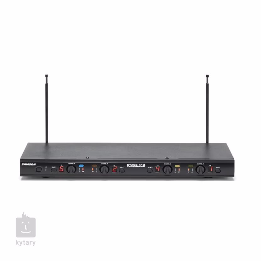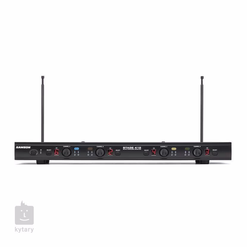 Samson Stage 412 nabízí 6 laditelných frekvencí v pásmu 173MHz -198MHz pro každý kanál. Ladění frekvencí mezi vysílačem a přijímačem probíhá pomocí IR paprsku. Systém Stage 412 nabízí přenos signálu až na vzdálenost 60 m. Napájení vysílače je zajištěno dvojicí AA baterií, které poskytnou až 10 hodin provozu.