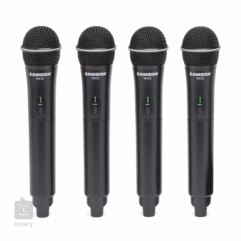 Součástí balení je přijímač, 4x mikrofon s vysílačem a napájecí adaptér.