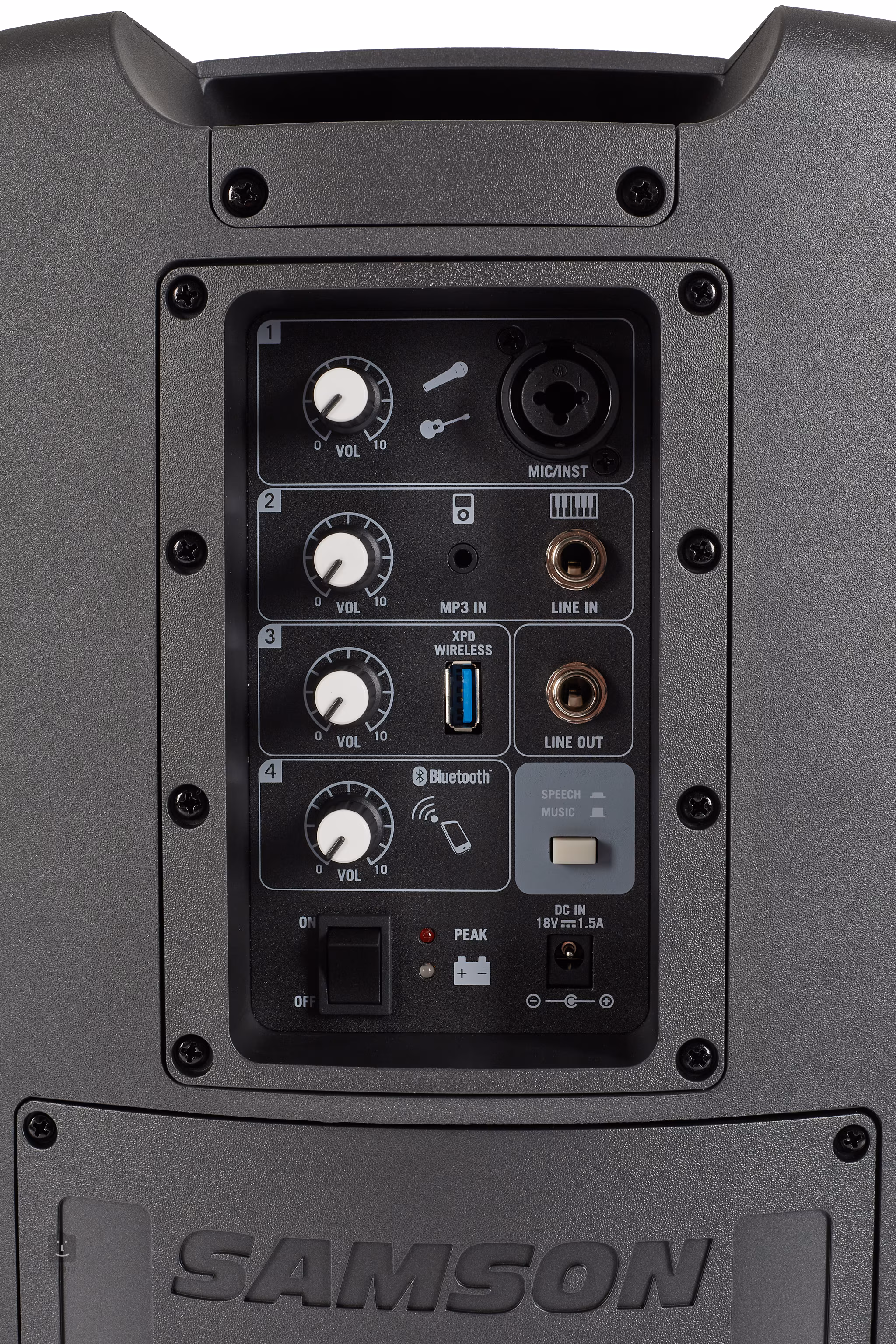 Kompaktní a snadno přenosný PA systém nabízející celou řadu možností. Systém je vybaven dobíjecí baterií s výdrží až 20 hodin. Odolný a lehký plastový reprobox je osazen dvojicí 6" woofrů a 1" výškovým měničem. Zesilovač třídy D produkuje výkon až 100W, což bez problémů postačí na ozvučení pouličních vystoupení nebo zahradních či domácích oslav. Systém je možné propojit se zdrojem zvuku i pomocí bezdrátového bluetooth připojení. Kromě toho nabízí systém i 4 kanálový mix s kombinovaným Jack 6,3 mm / XLR vstupem pro mikrofon nebo nástroj, vstupem pro klávesy nebo player, separátním vstupem pro USB připojení a samostatným vstupem pro Bluetooth zařízení. Každý kanál je vybaven vlastním ovladačem hlasitosti. Součástí balení je i dynamický mikrofon s kabelem. Barevné provedení: Black.