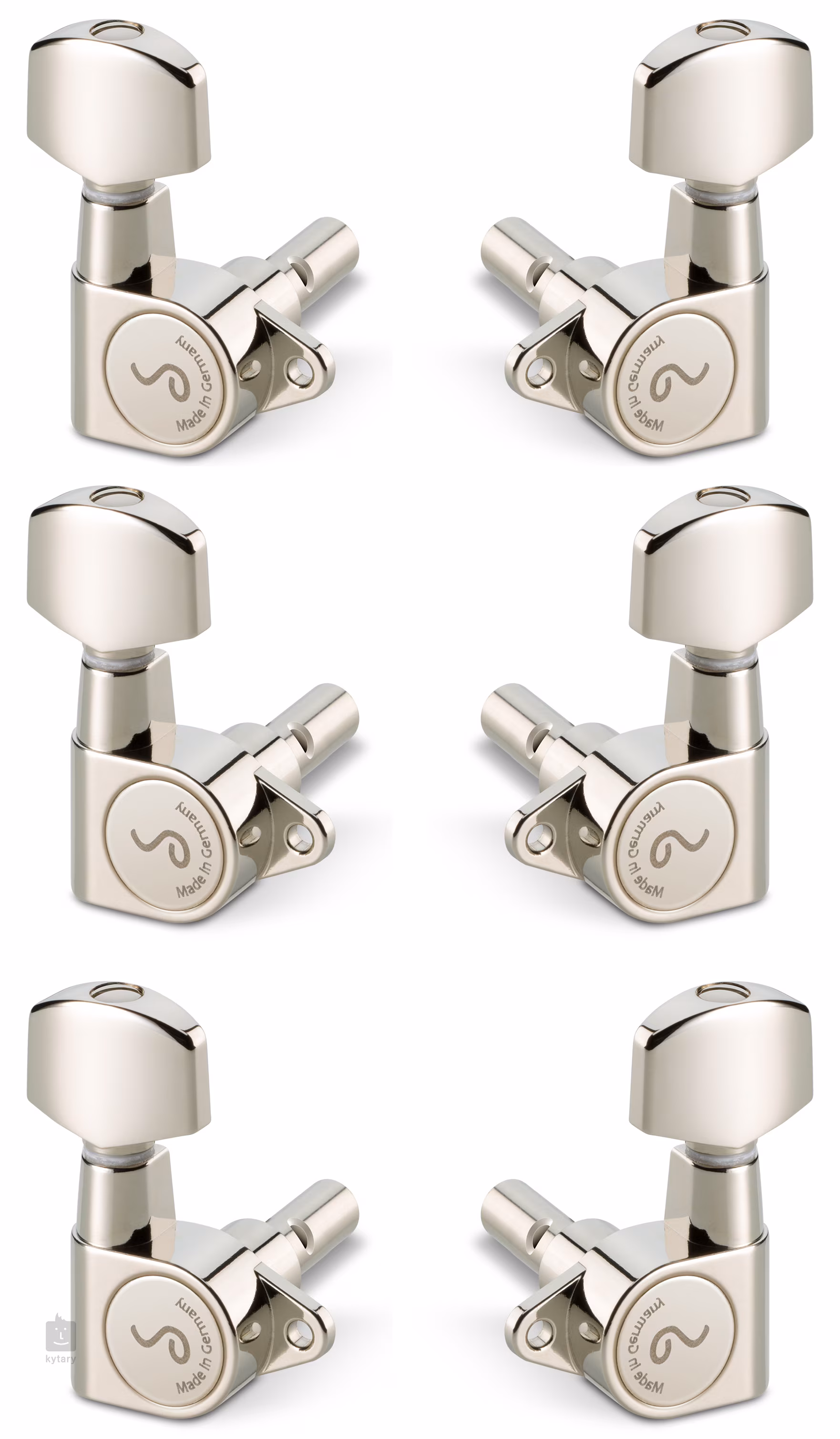 Tato sada obsahuje kompletní sadu šesti ladících kolíků – tři pravé a tři levé. Vzdálenost otvoru pro strunu od základny ladícího kolíku činí 21,7 mm. Převodový poměr 18:1 se stará o výjimečnou přesnost ladění, kterou ocení i ti nejnáročnější kytaristé. Tomu dopomáhá také fakt, že kolíčky k uchycení strun jsou vyrobeny z kvalitní mosazi, která jim zároveň dodává dlouhou životnost. Niklové provedení dodává mechanikám tradiční vzhled, který skvěle doplní každou kytarovou hlavu. Dopřejte svému nástroji tu nejvyšší možnou stabilitu ladění s kolíky značky Schaller!