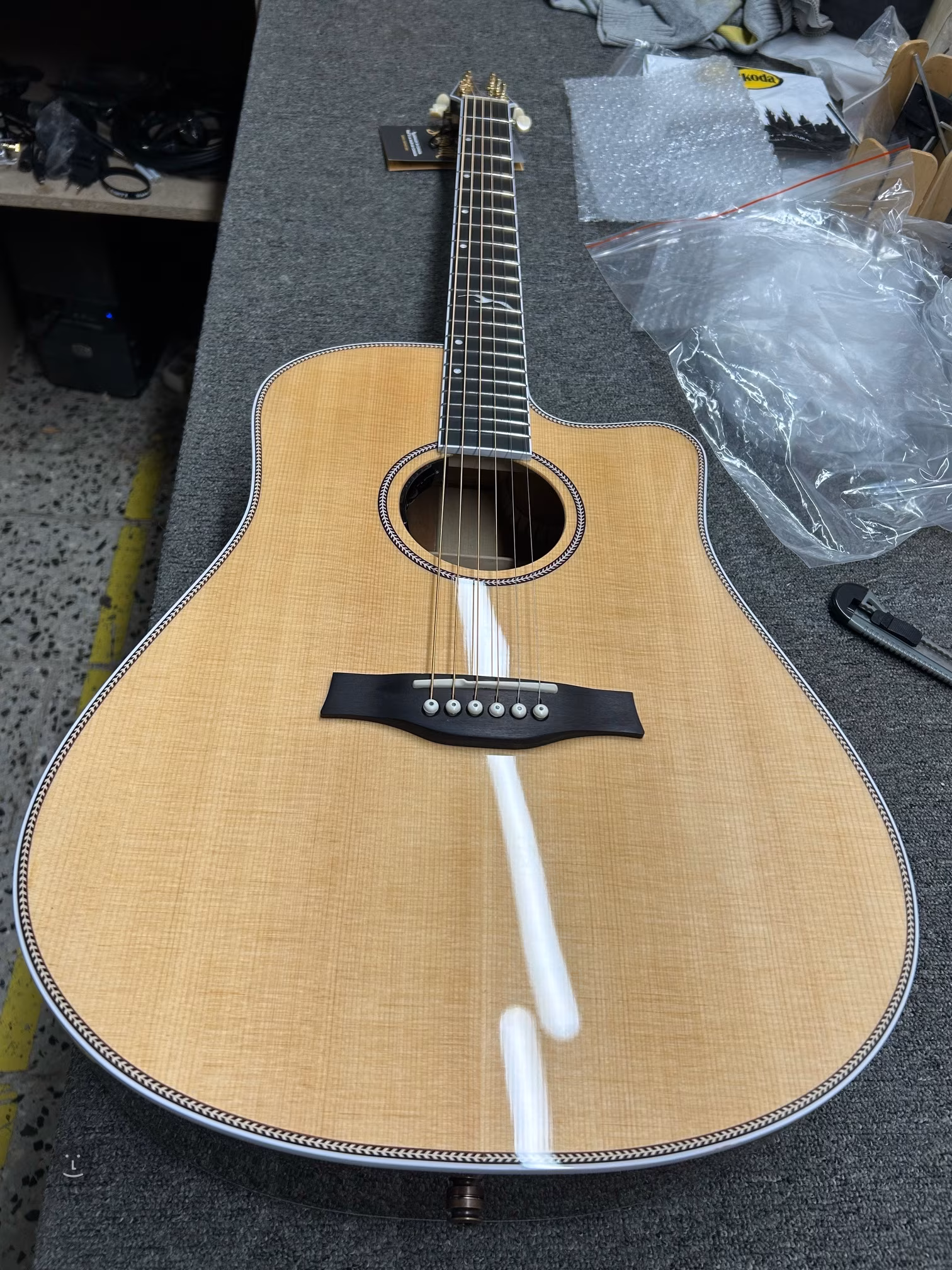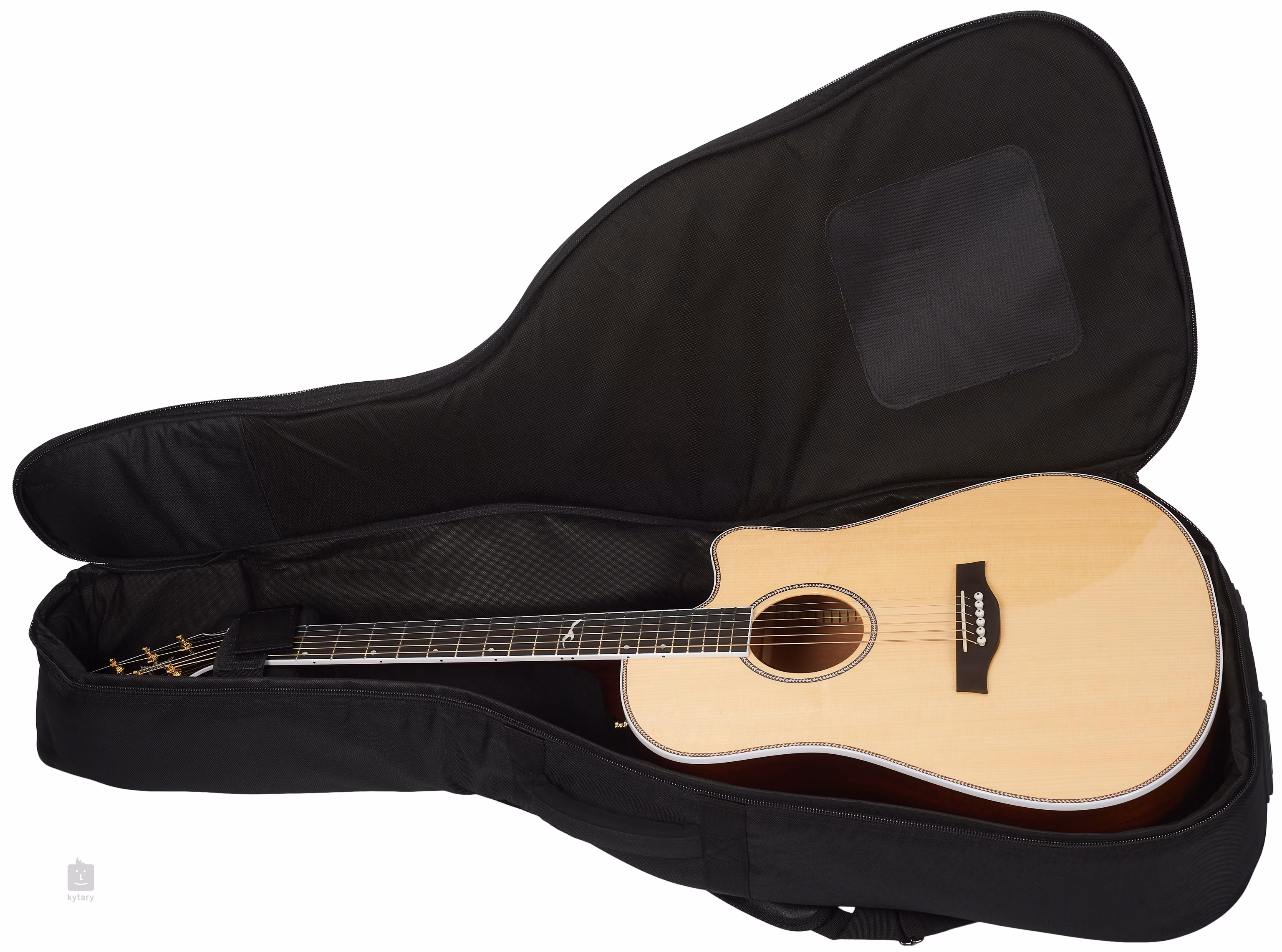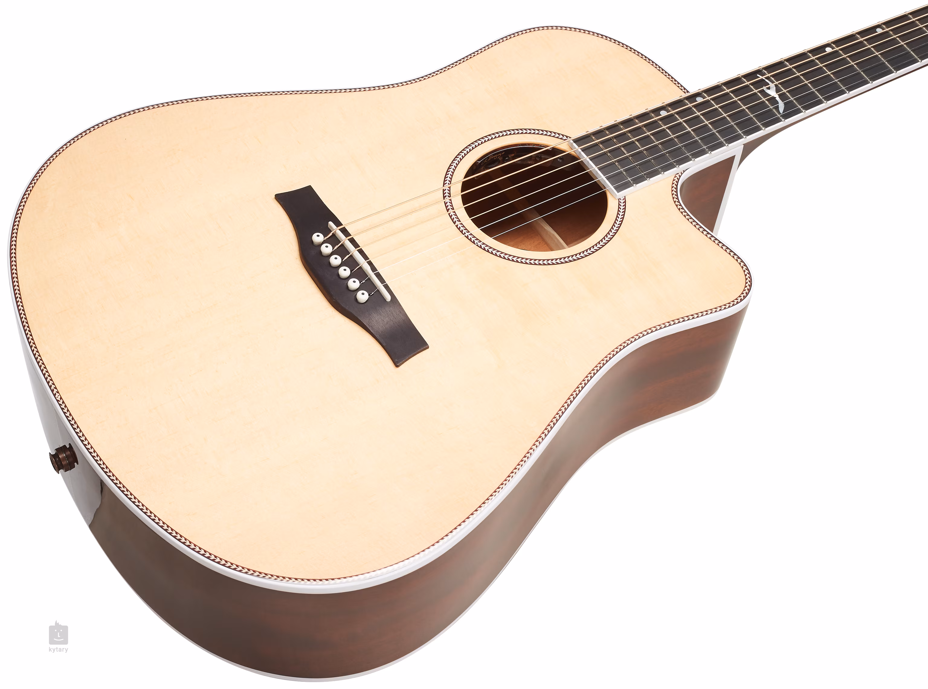 Zvuk je snímán pomocí Tru-Mic systému s podkobylkovým snímačem Element, mikrofonem a preampem L.R. Baggs Anthem umístěným v ozvučnicovém otvoru kytary. Stabilitu ladění zaručují uzavřené pozlacené mechaniky s bílými kolíčky a převodovým poměrem 18:1 (Bass side) a 26:1 (Treble side). Stylový design nástroje podtrhuje oboustranná bílá lemovka s vykládáním s motivem rybí kosti, zdobná rozeta a logo a perleťový motiv na hlavici kytary. Nástroj je dodáván v obalu (gig bag).