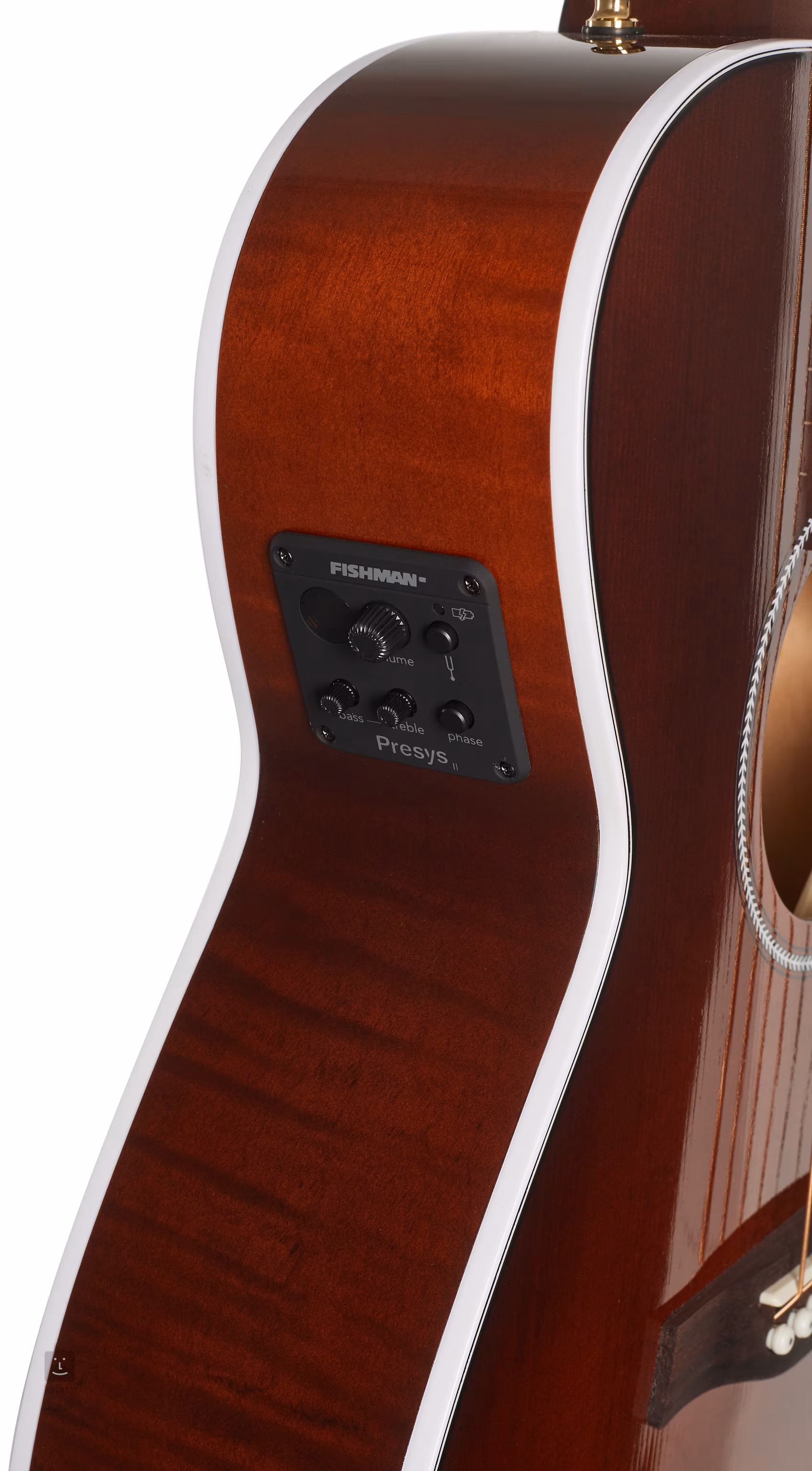 Model Performer CW CH Burnt Umber Presys II je díky kompaktnějšímu tělu typu Concert Hall zvláště vhodný pro hru prstovou technikou. Jeho přední deska je vyrobena z tlakově testovaného masivního smrku, zadní deska a luby jsou zhotoveny z překližovaného fládrovaného javoru. Ke krku ze stříbrolistého javoru je přilepen palisandrový hmatník. Dohmat na vyšších polohách hmatníku usnadňuje spodní výřez těla.