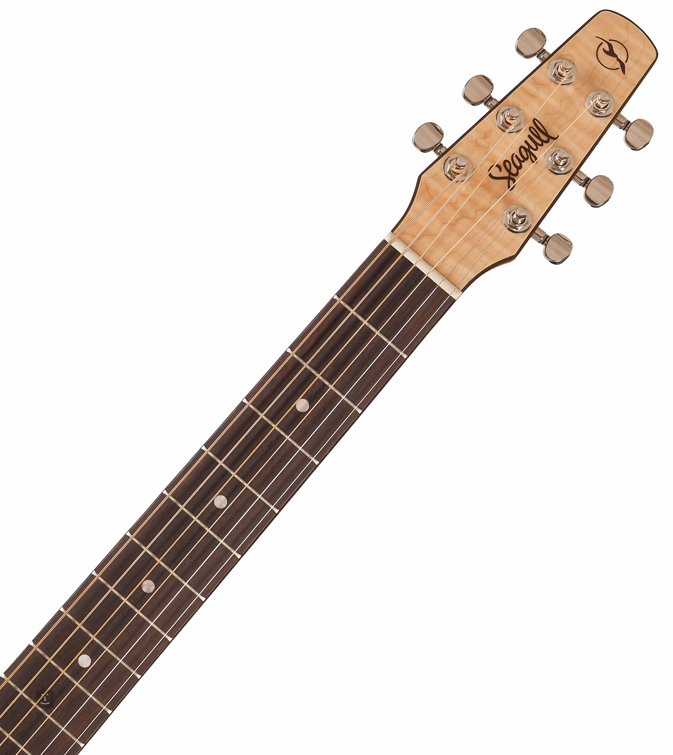 Možnost ozvučení nabízí podkobylkový piezo snímač Fishman Sonicore a předzesilovač Fishman Presys II s ovladačem hlasitosti, dvoupásmovým ekvalizérem, tlačítkem Phase pro potlačení efektu zpětné vazby a zabudovanou ladičkou. Struny jsou uchyceny v chromovaných ladících mechanikách a palisandrové kobylce. Pěkné zpracování podtrhuje rozeta se vzorem rybí kosti, oboustranná obvodová lemovka těla, pickguard z imitace želvoviny a firemní logo na typické hlavici kytar Seagull.