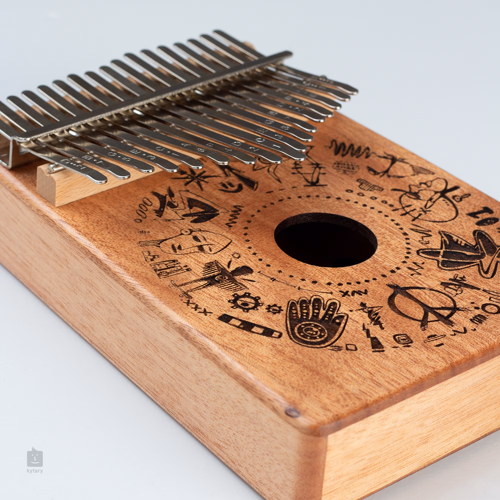 Kalimba je unikátní melodický nástroj, který přidá do vaší tvorby nebo live performance unikátní a nezaměnitelný prvek. Může sloužit k doprovodné nebo sólové hře. Nástroj je vyroben z kvalitního mahagonového dřeva, které je pověstné svými skvělými rezonančními vlastnostmi. Ocelové plátky jsou laděné do tóniny C dur, konkrétně v rozsahu C4-E6, a poskytují velice čistý a vřelý zvuk. Díky své nízké hmotnosti a malým rozměrům je tento nástroj ideální na cesty – proto v balení najdete praktické přepravní pouzdro. Kromě toho je součástí také látkový obal a ladicí kladívko.