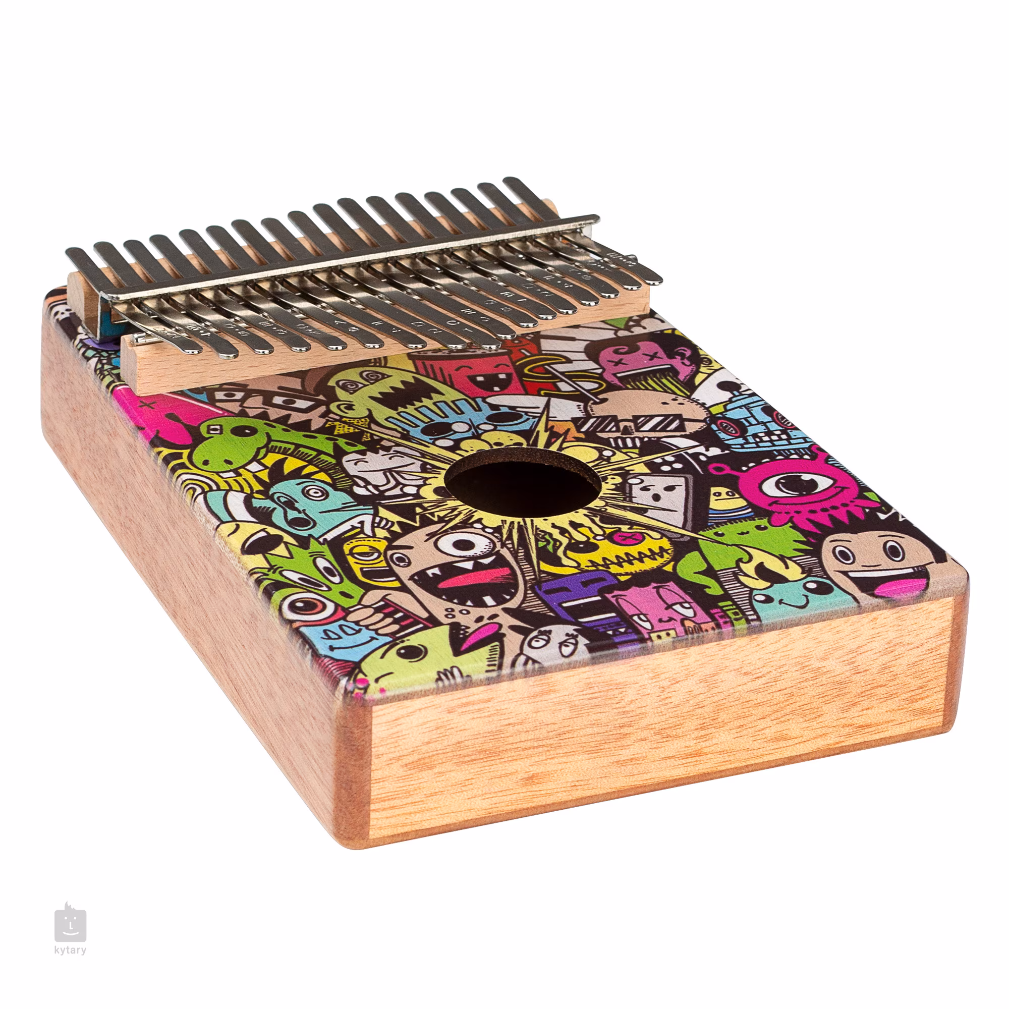 Kalimba je unikátní melodický nástroj, který přidá do vaší tvorby nebo live performance unikátní a nezaměnitelný prvek. Může sloužit k doprovodné nebo sólové hře. Nástroj je vyroben z kvalitního mahagonového dřeva, které je pověstné svými skvělými rezonančními vlastnostmi. Ocelové plátky jsou laděné do tóniny C dur, konkrétně v rozsahu C4-E6, a poskytují velice čistý a vřelý zvuk. Díky své nízké hmotnosti a malým rozměrům je tento nástroj ideální na cesty – proto v balení najdete praktické přepravní pouzdro. Kromě toho je součástí také látkový obal a ladicí kladívko.