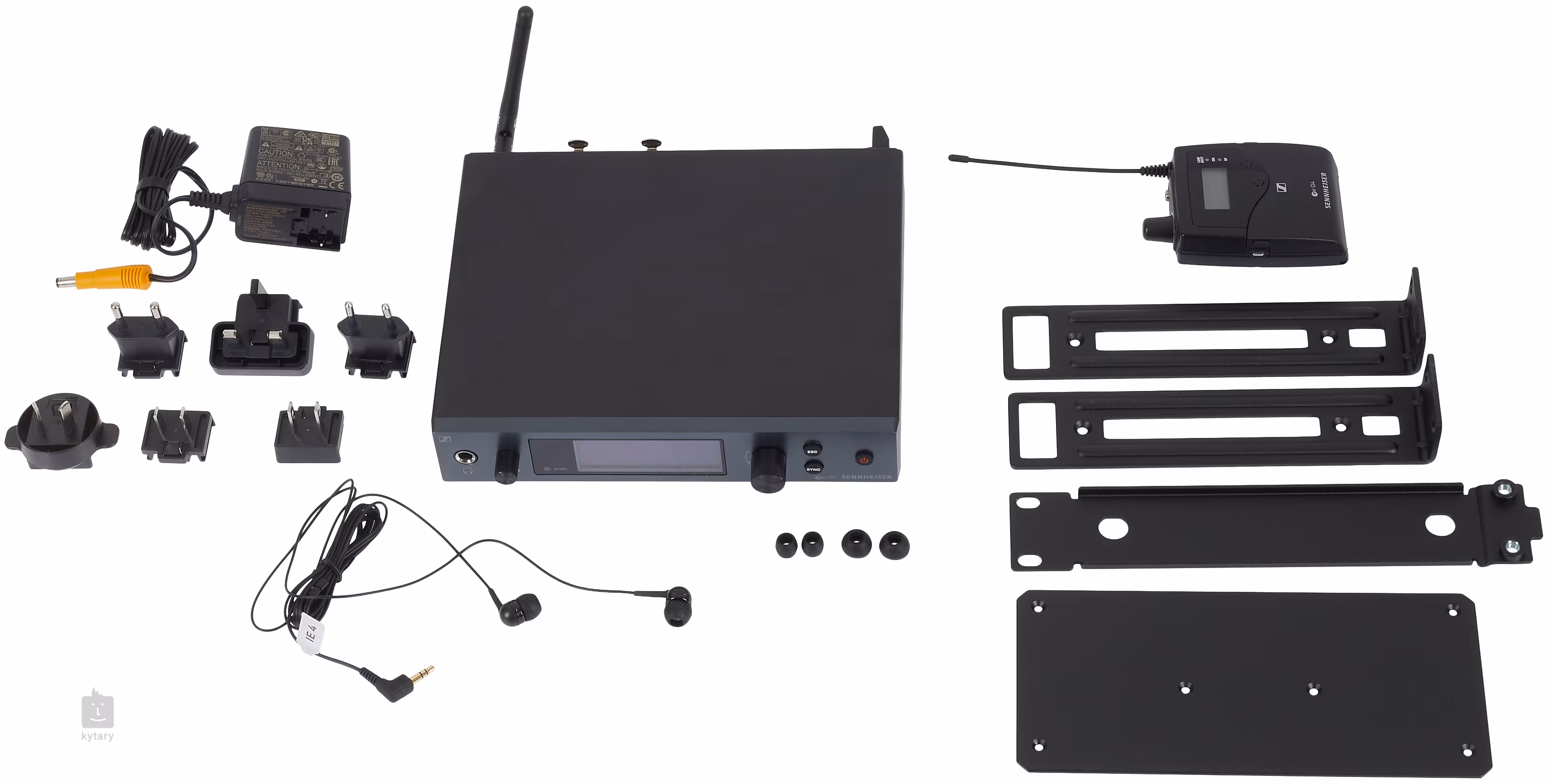 Centrum bezdrátového monitorovací setu bezesporu tvoří vysílač SR IEM G4, který je kompaktní a lehký, ale zároveň je možné jej zabudovat do racku. Vysílač umožňuje komplexní profesionální nastavení prostřednictvím špičkového OLED displeje, ale také vzdálenou správou pomocí SW WSM Control Control a síťového rozhraní. Vysílač pracuje celkem s 16 bankami v šířce pásma 42 MHz a umožňuje plně automatické i manuální ladění v rámci až 1680 frekvencí. Dosah činí až 100 m. V balení dále naleznete jeden bodypack přijímač EK IEM G4 s možností nastavení hlasitosti a výstupem pro sluchátka. Bodypack je možno napájet dvěmi AA bateriemi nebo díky vestavěným kontaktům i dobíjecí NiMH baterií BA 2015 (nutno dokoupit zvlášť). Co by to bylo za odposlechový systém, kdyby neobsahoval sluchátka? K bodypacku tedy zapojíte dodávaný in-ear model IE 4, jenž poskytuje vynikající kvalitu zvuku s vysokou dynamikou i basovou složkou a rovněž dobrou izolaci od okolního hluku. K dispozici jsou vyměnitelné náušníky pro bezpečné a pohodlné nošení.