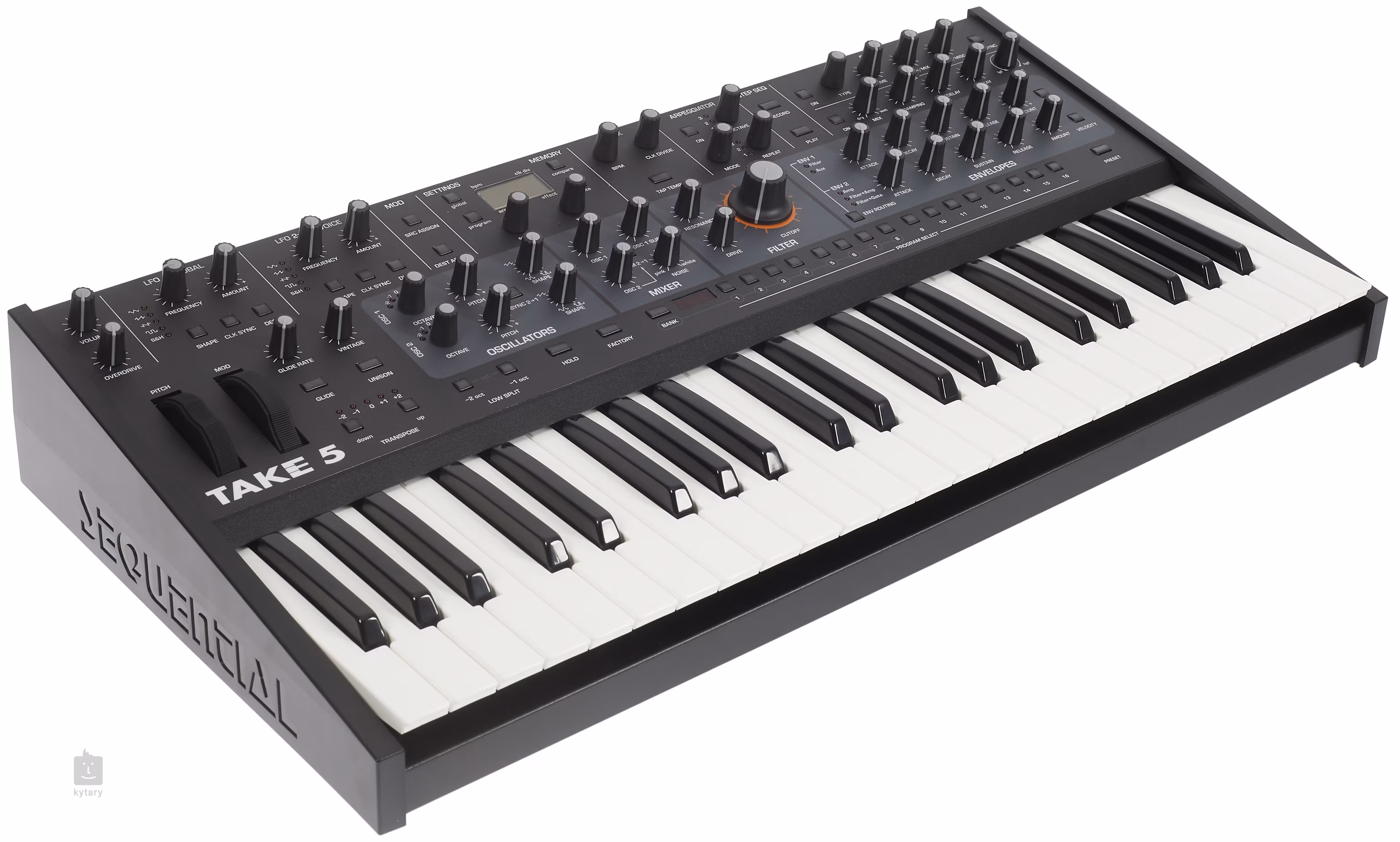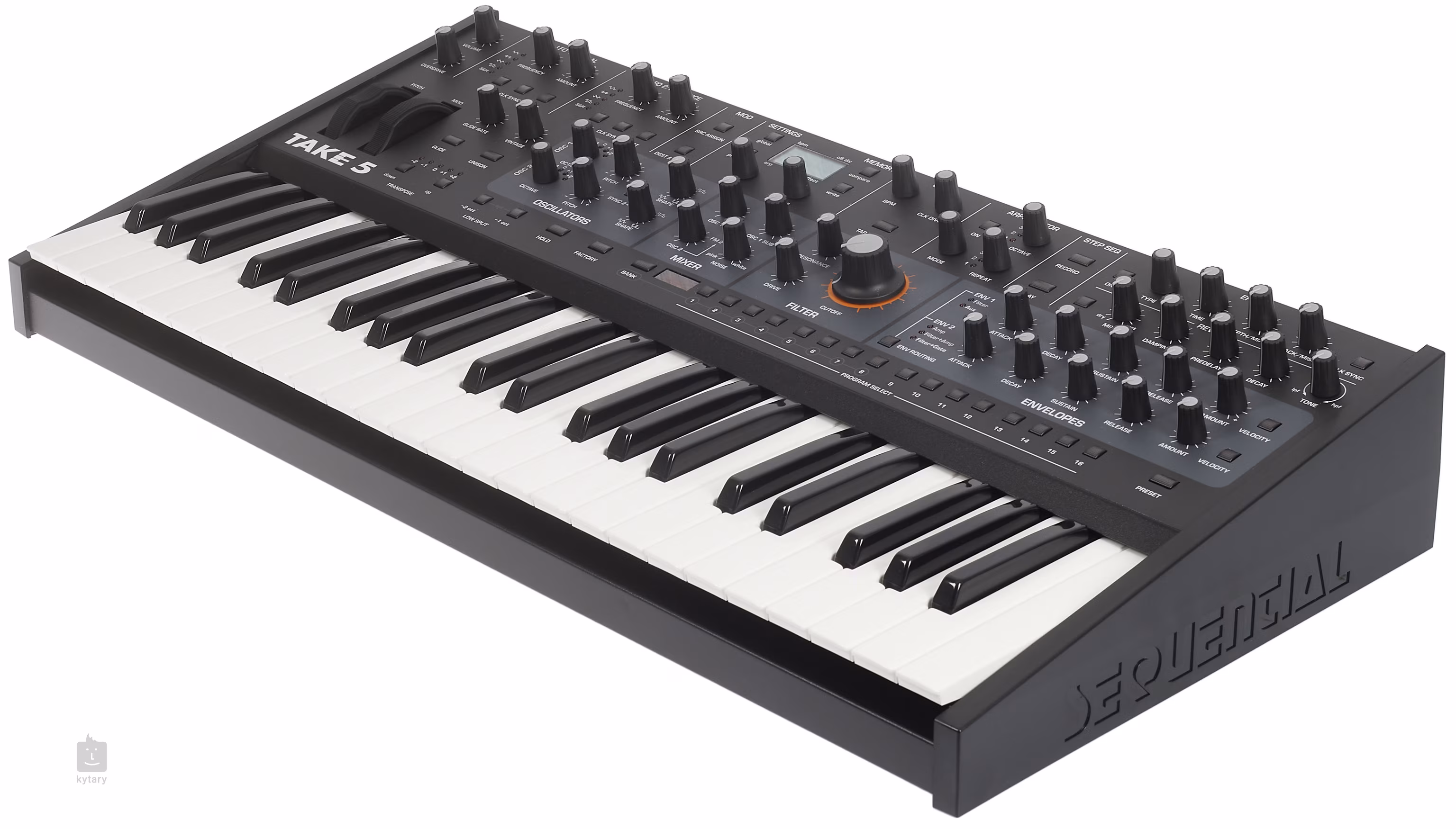Polyfonní pětihlasý syntezátor Sequential Take 5 v sobě ukrývá obrovské kreativní možnosti, které ocení začínající i profesionální hráči. Jeho kompaktní rozměry zajišťují snadnou přenositelnost, abyste nástroj mohli mít vždy po ruce, ať už na pódiu, ve studiu, ve zkušebně nebo doma na stole. Nástroj má 44 kláves standardní velikosti a disponuje polovyváženou klaviaturou s volitelnou funkcí Aftertouch, jejíž rozsah je celkem 3 a půl oktávy. Díky funkci Low Split lze klávesnici navíc rozdělit do dvou zón s různým tónovým rozsahem a značně tak rozšířit vaše herní možnosti.