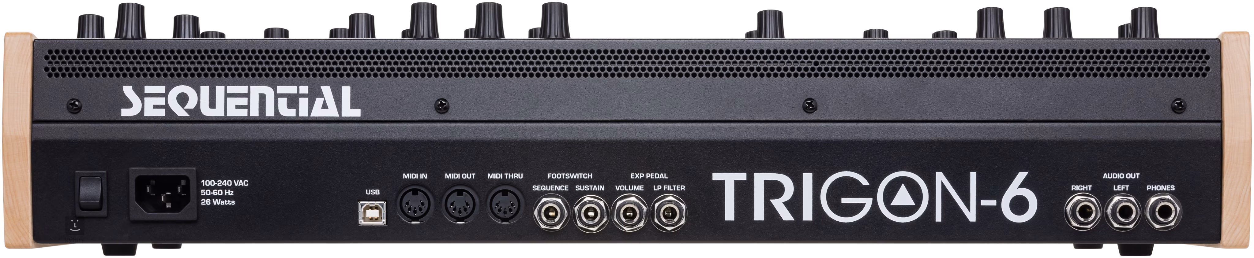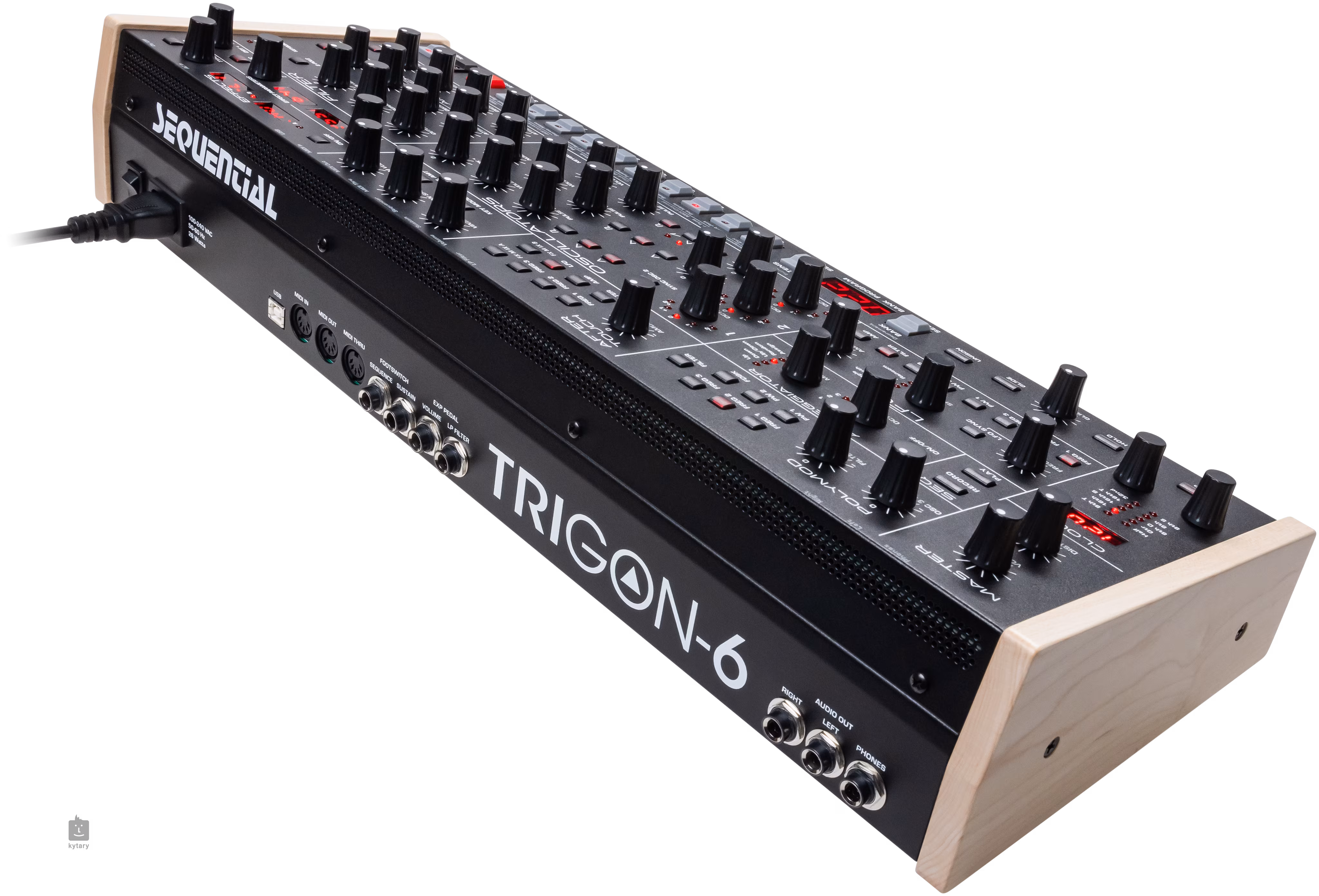 Sequential Trigon 6 je založen na principu subtraktivní syntézy a obsahuje všechny komponenty, které v profesionálním synťáku nesmí chybět. Jeho středobodem jsou tři VCO oscilátory s trojúhelníkovou, pilovitou a čtvercovou zvukovou vlnou, již zmíněný „ladder“ filtr, čtyřfázová ADSR obálka, synchronizovatelné LFO, polyfonní sekvencer a arpeggiator. Součástí je také rezonanční filtr (přepínatelný mezi 2 a 4 póly), který je vybaven dedikovaným drive efektem a ovladačem zpětné vazby, což vám umožní plynule přecházet mezi jemným zvukem a nakřáplým zkreslením.
