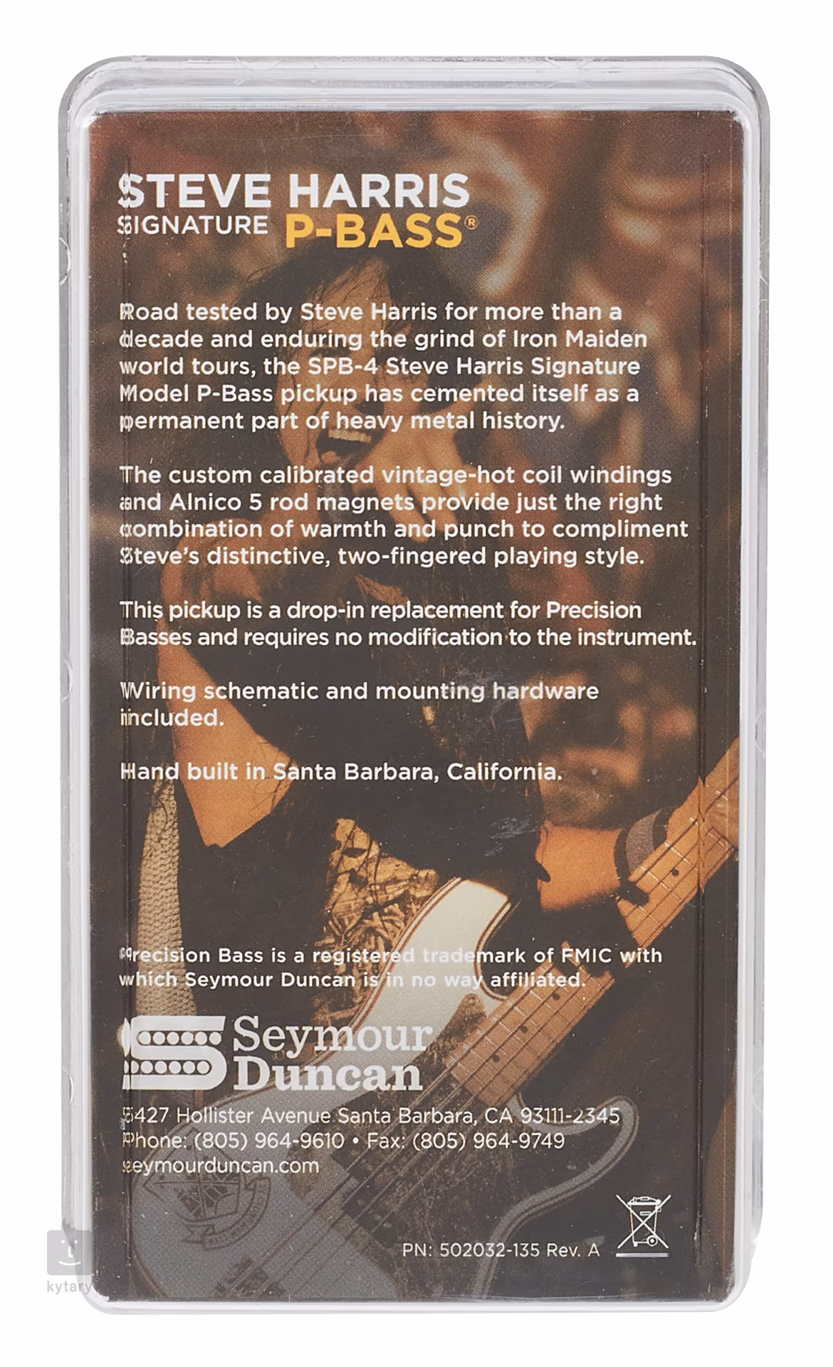 Signature snímač Stevea Harrise z Iron Maiden byl navržen v Custom Shopu firmy Seymour Duncan v úzké spolupráci s tímto legendárním basákem s nezaměnitelným herním stylem. S Alnico 5 magnety a ručně vinutými cívkami však není vhodný pouze pro metalové fanoušky – díky skvělé dynamice, pevným basům, jasným výškám a agresivním středům se jedná o univerzální snímač, který přesvědčí i hráče jiných žánrů.