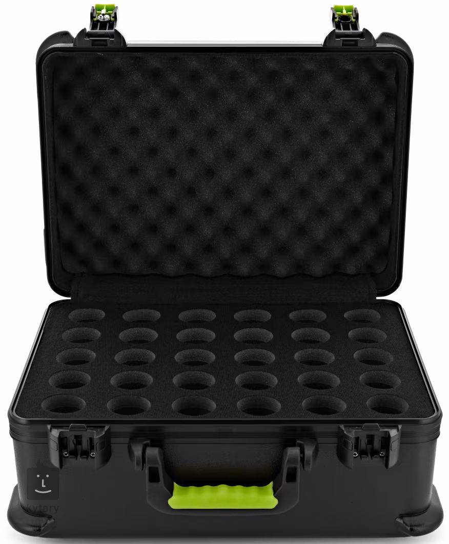 Díky zámkovému mechanismu TSA je kufr ideální pro leteckou dopravu. Kapacita kufru dostačuje pro 30 drátových mikrofonů. Mikrofony nejsou součástí balení.