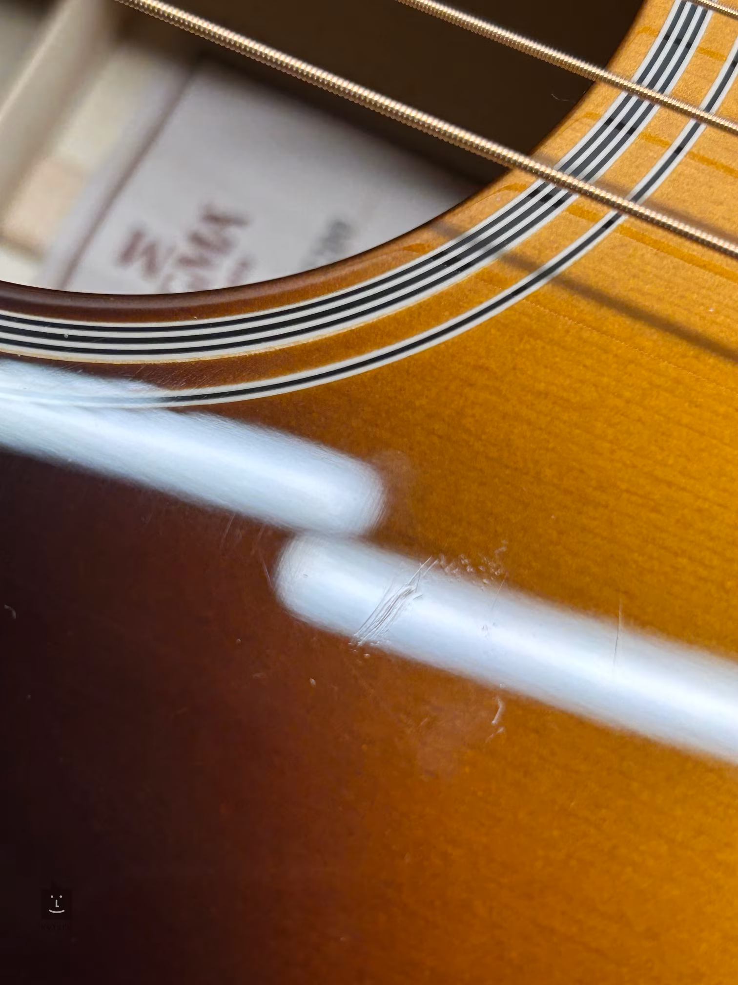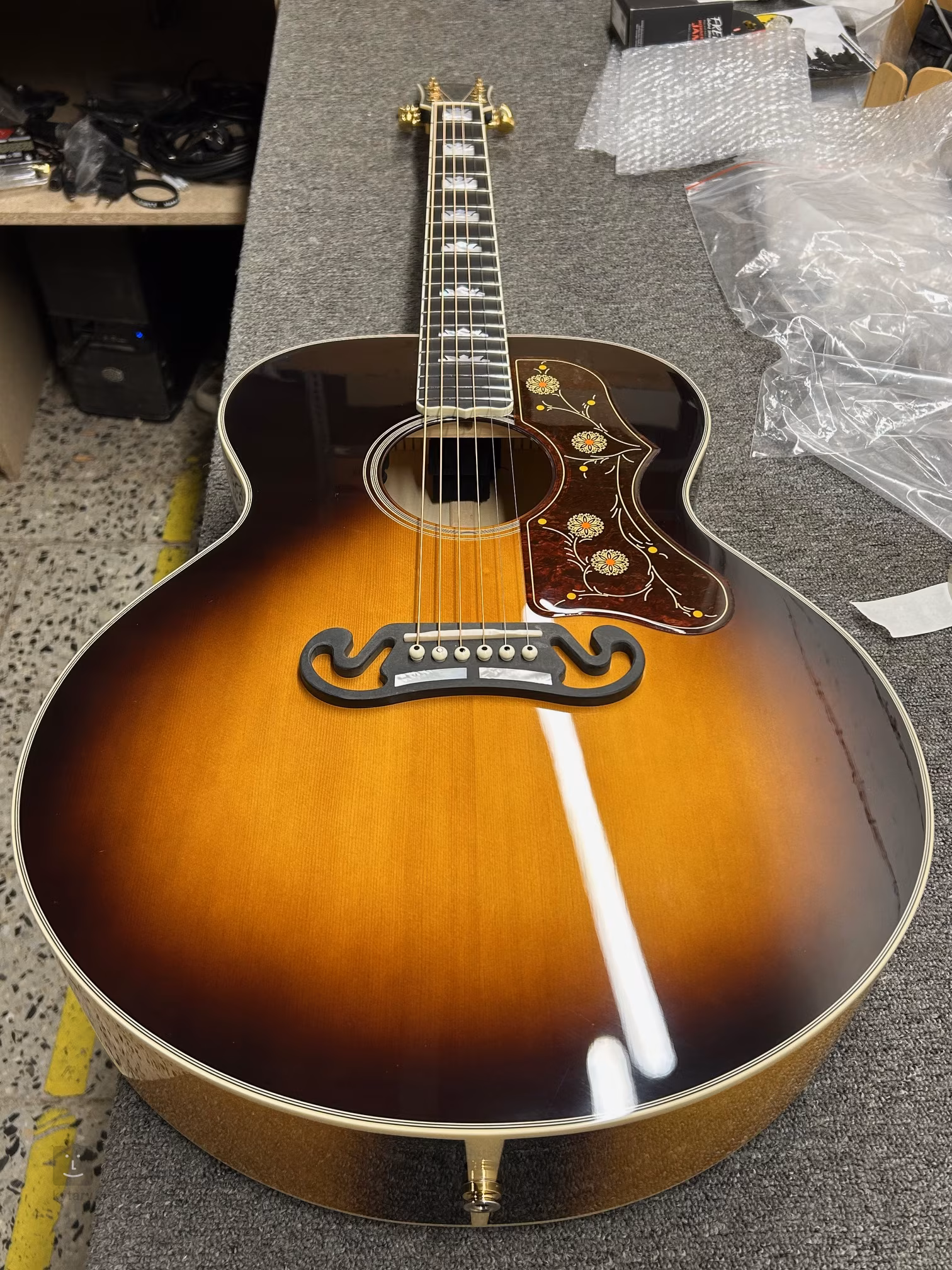 Přední deska kytary je zhotovena z masivu smrku Sitka, zadní deska a luby jsou vyrobeny z vrstveného fládrovaného javoru. Kresbu dřev zvýrazňuje rozleštěný lesklý lak a Vintage Sunburst úprava topu. K javorovému krku, standardně připevněnému k tělu na čtrnáctém pražci pevným rybinovým spojem (dovetail joint), je přilepen hmatník z kompozitního materiálu micarta osazený dvaceti pražci. Orientaci na hmatníku usnadňují polohové značky ve tvaru korunek.