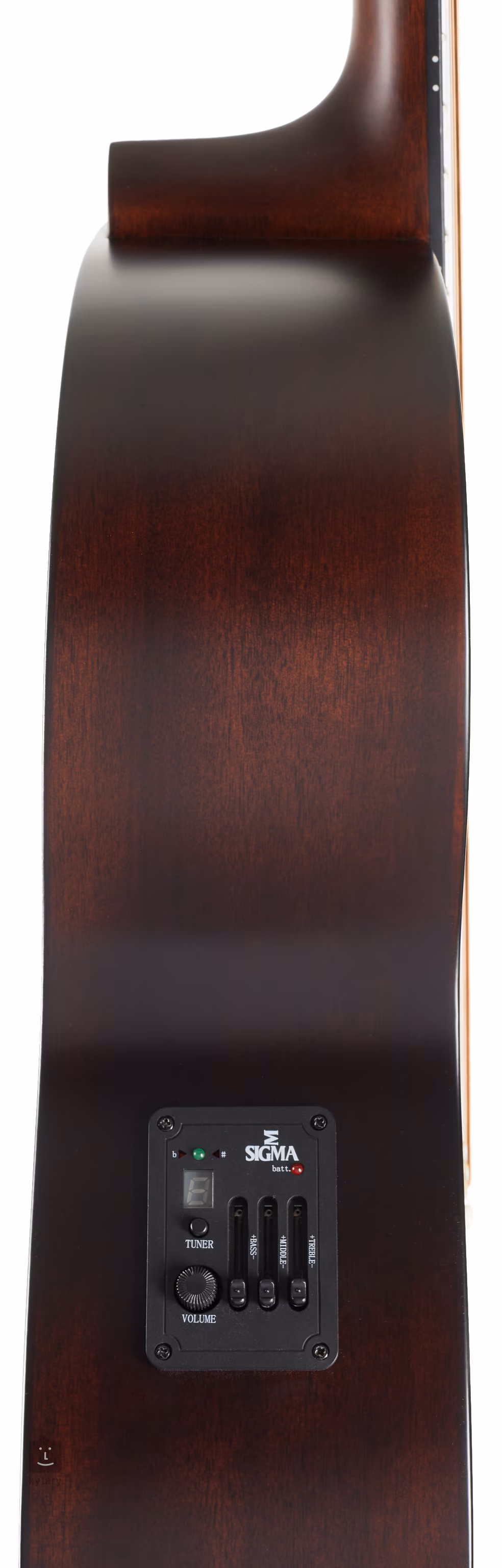 Sigma GJM-SGE je polomasivní elektroakustická kytara s velkým rezonantním tělem tvaru Grand Jumbo z řady SG Series, která sdružuje nástroje inspirované slavnými designy známé americké značky.